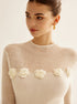 3D Çiçek Panelli Yumuşak Örgü Üst