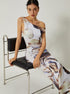 Olyssa Asimetrik Baskılı Omuzları Açık İnce Uzun Elbise