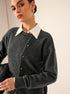 Asimetrik Düğmeli Bisiklet Yaka Hırka