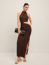Sert Asimetrik Kesim Açık Maxi Abiye Elbise