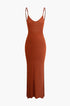 Sırt Dekolteli Spagetti Askılı Yırtmaçlı Triko Elbise