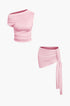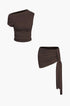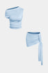 Basic Asimetrik Yırtmaçlı Crop Top Ve Bağlamalı Mini Etek Seti
