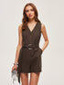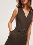 Keten Kuşaklı V Yaka Tulum