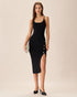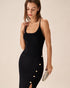 Olyssa Siyah U Yaka Düğmeli Slip Kazak Elbise