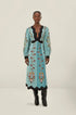 Olyssa Mavi Akışkan Güzellik Uzun Kollu Midi Elbise