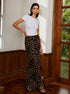 Günlük Leopar Desenli Şifon Maksi Etek