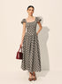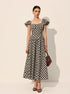 Şık Kareli Kabarık Kol Abiye Elbise