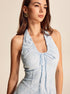 Şık Çiçekli Halter Şifon Abiye Elbise