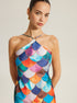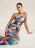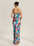 Renkli Kelebek Desenli Yaka Saten Abiye Elbise