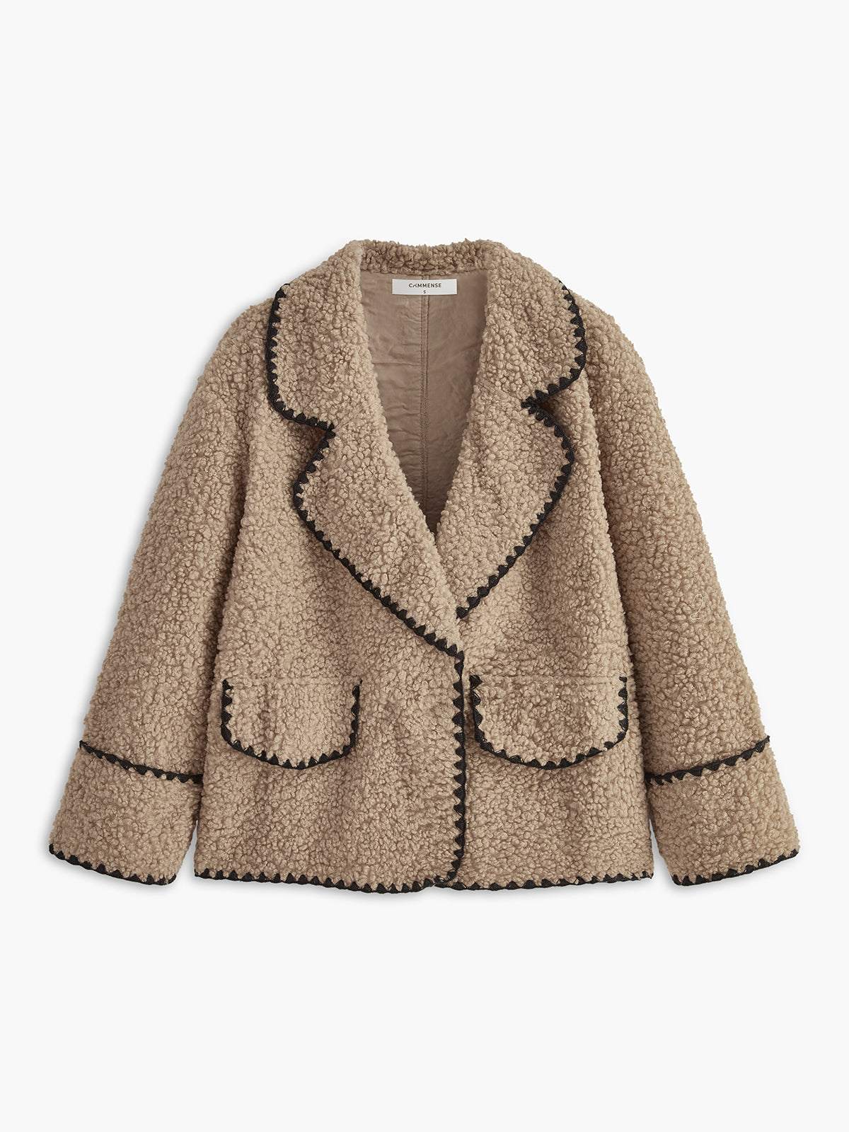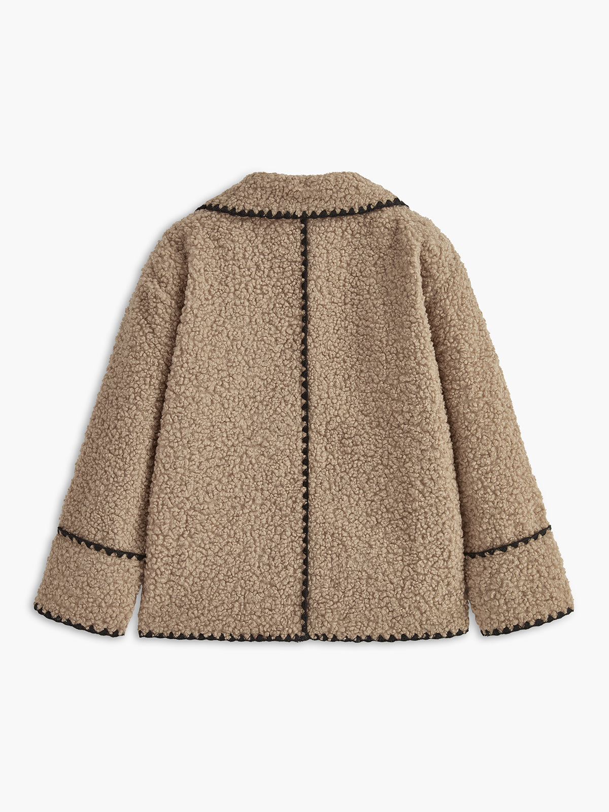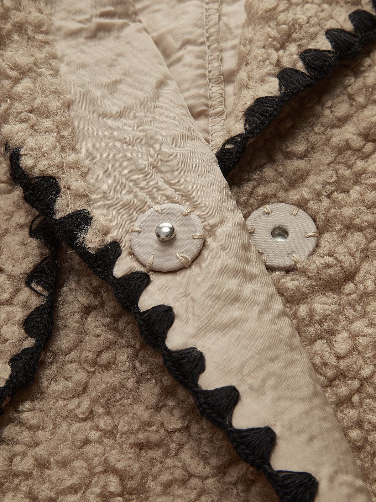 Zıt İşlemeli Kenar Detaylı Polar Ceket