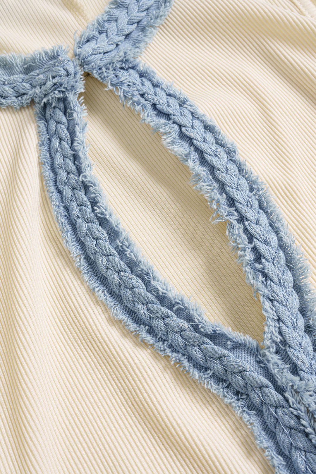 Kontrast Patiş Yamalı Kolsuz Maxi Elbise