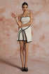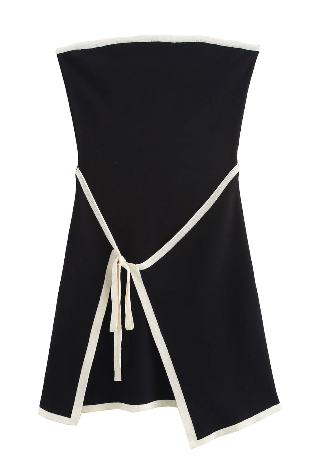 Kontrast Kenar Detaylı Triko Bağcıklı Straplez Mini Elbise