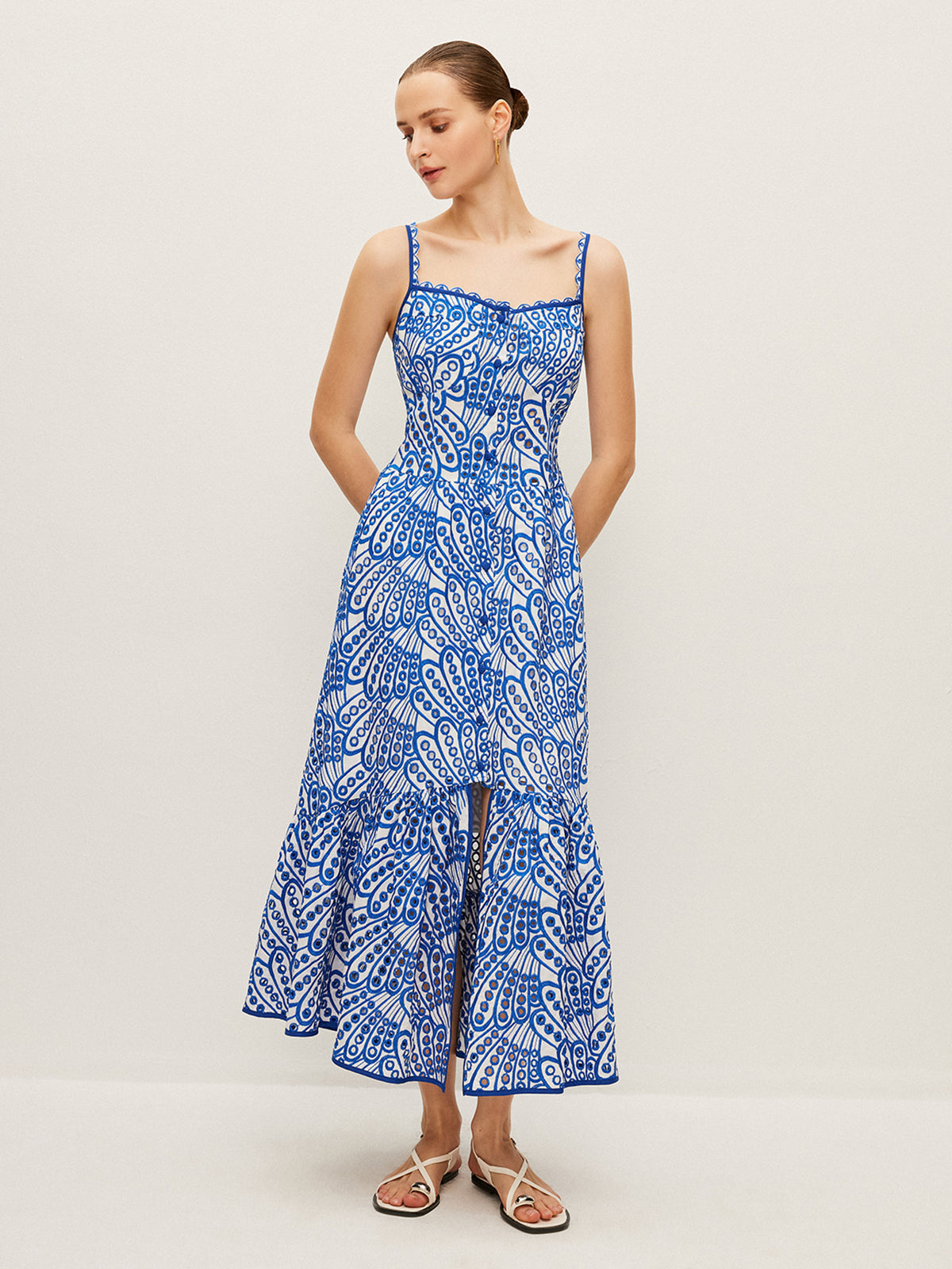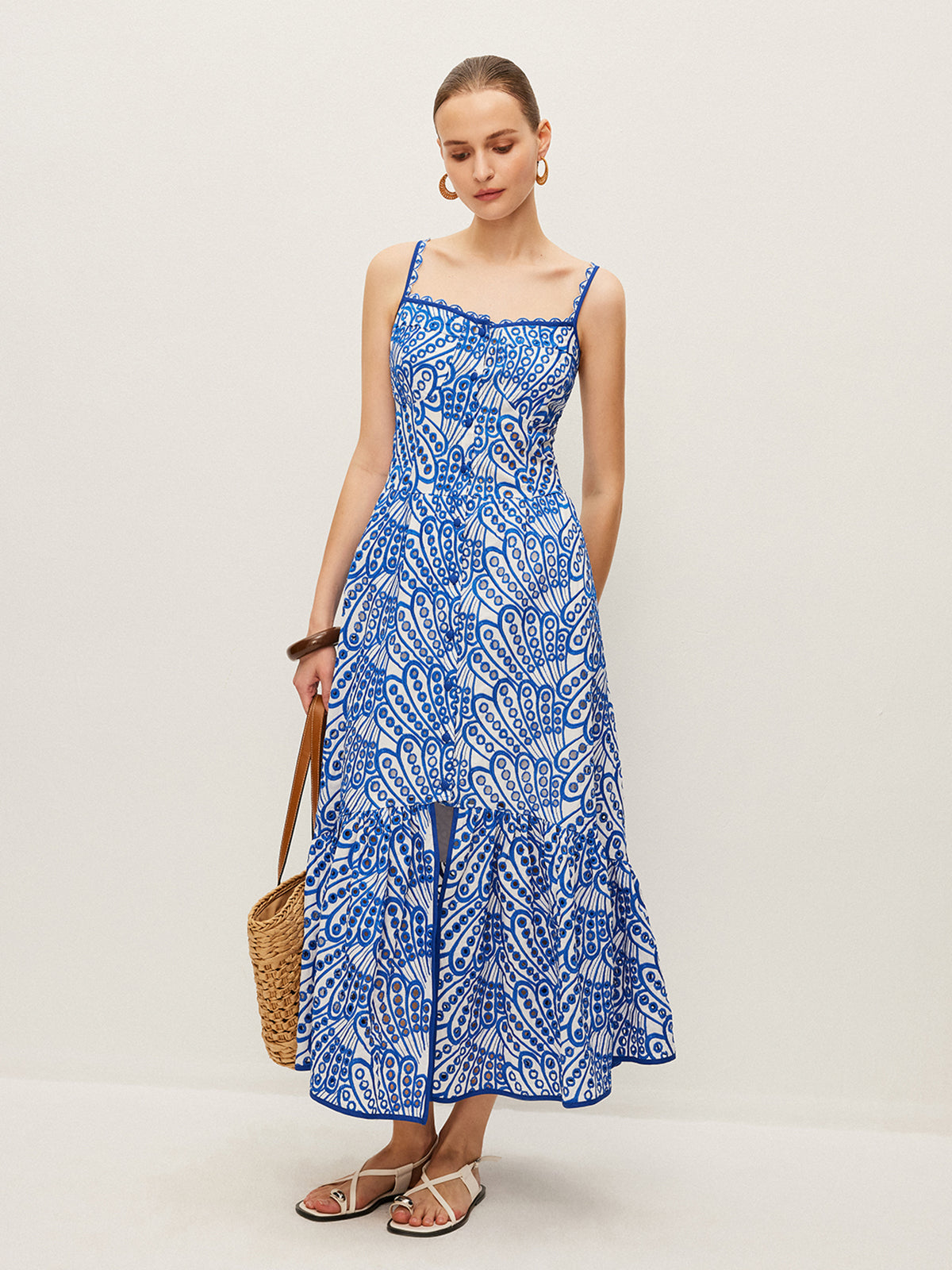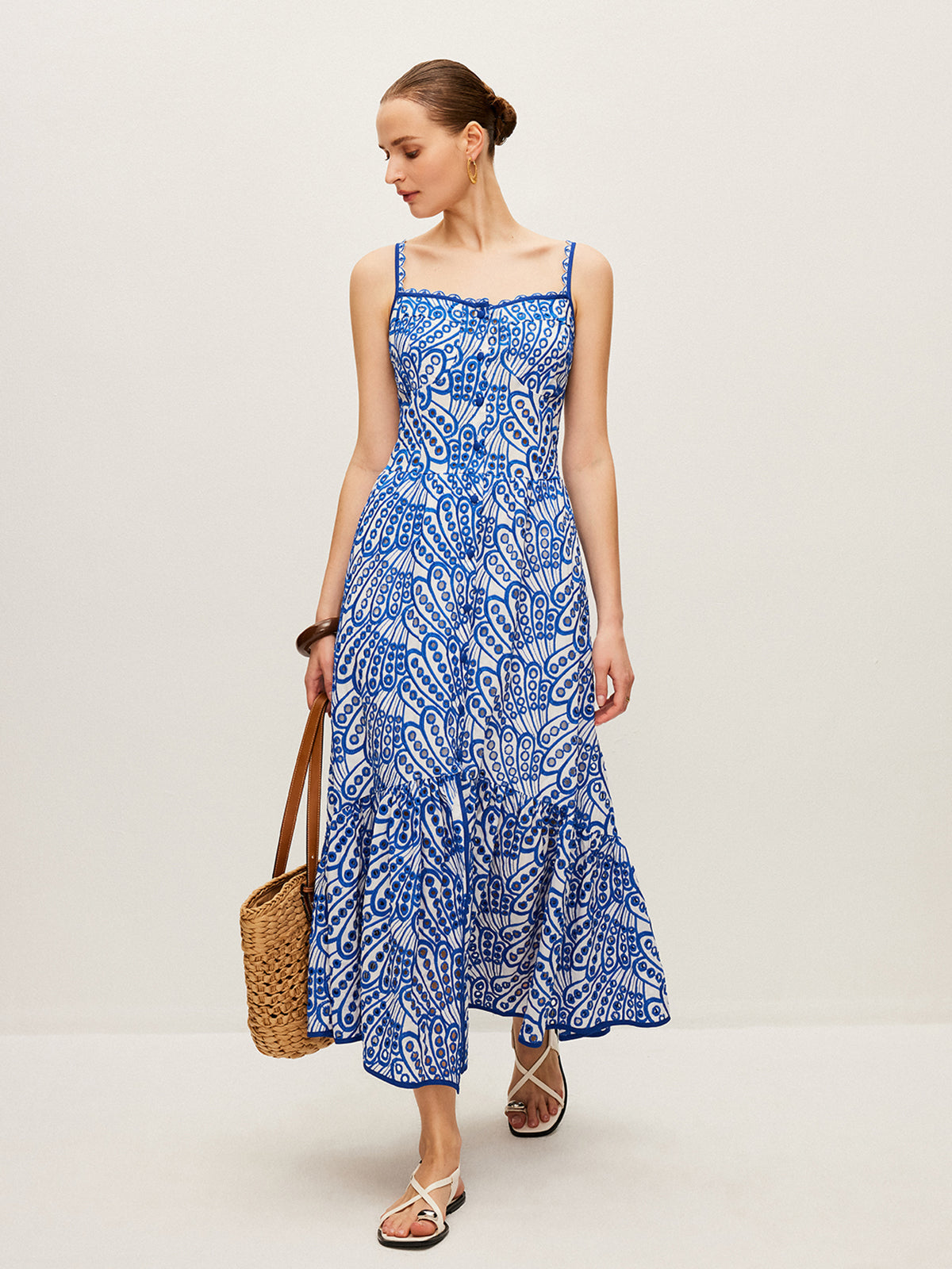 Şirin Pamuklu İşlemeli Askılı Elbise