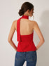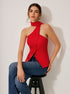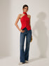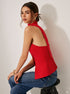 Pamuk ve Keten Askılı Bluz Dekoratif Cep Detayları ile