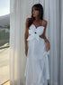 Kesik Çiçekli Sırtı Açık Uzun Elbise