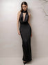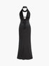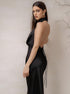 Derin V Yaka Halter Saten Abiye Uzun Elbise