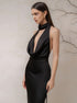 Derin V Yaka Halter Saten...