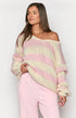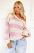 Açık Pembe Çizgili Triko Kazak