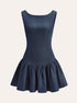 Şık Kot Kolsuz Fırfırlı Elbise ile Zahmetsiz Tarz
