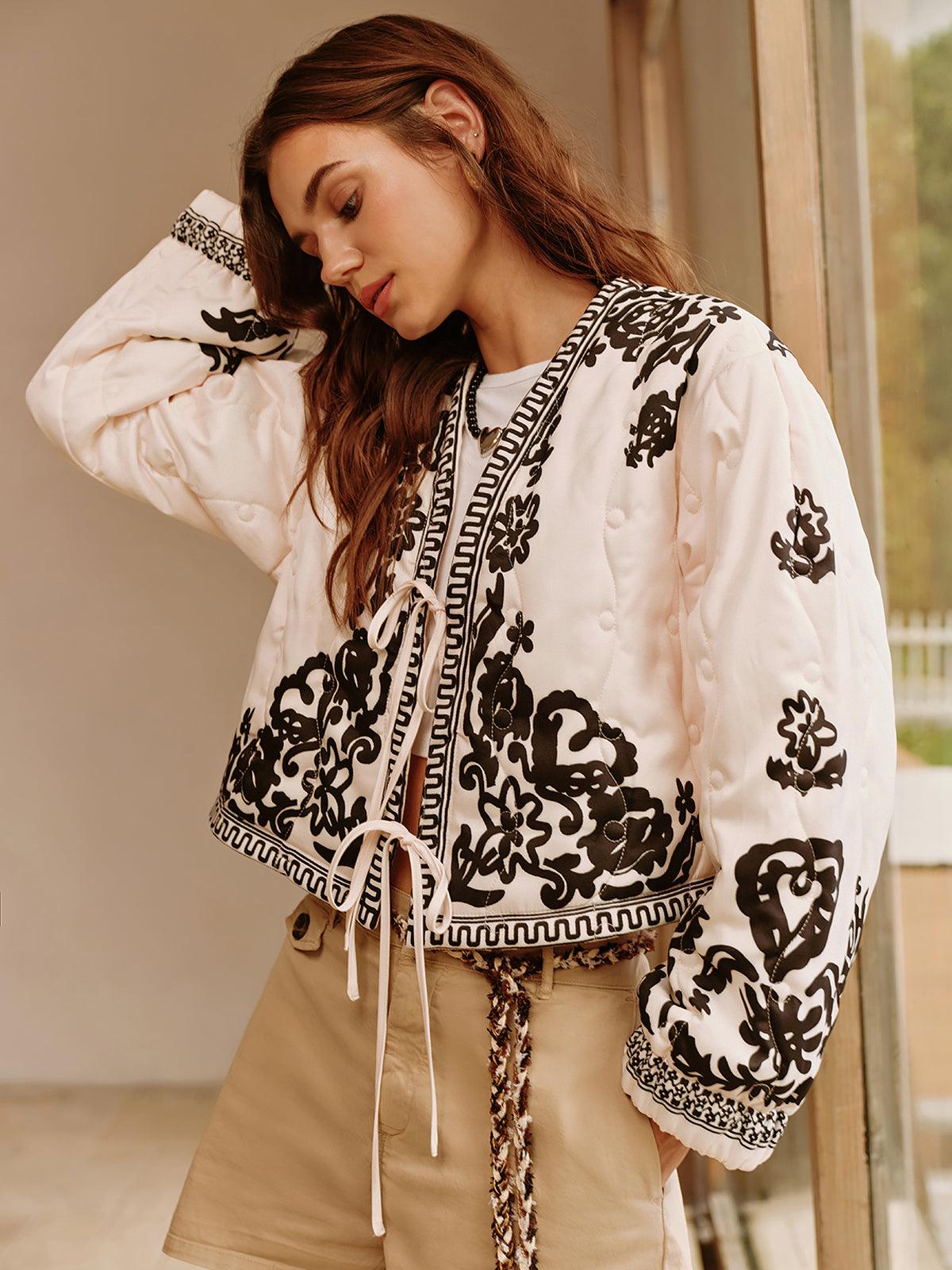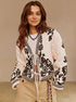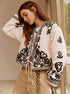Desenli Şal Yaka Bağlamalı Ceket