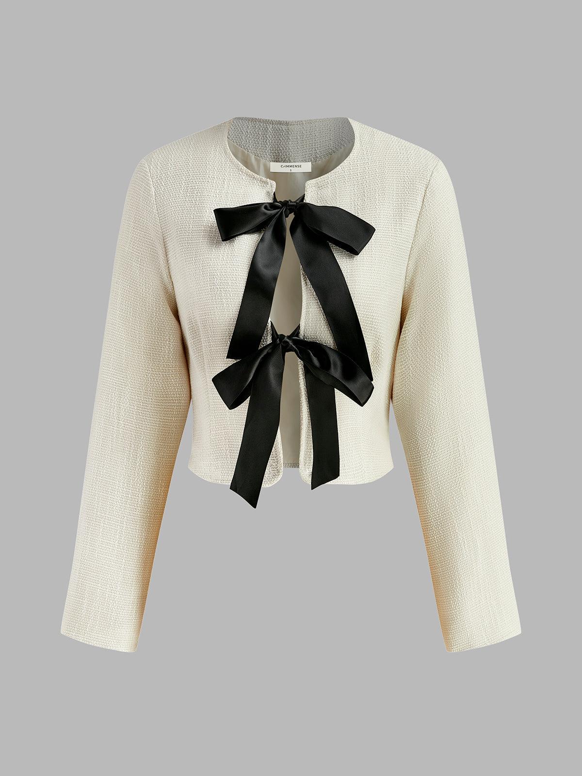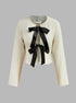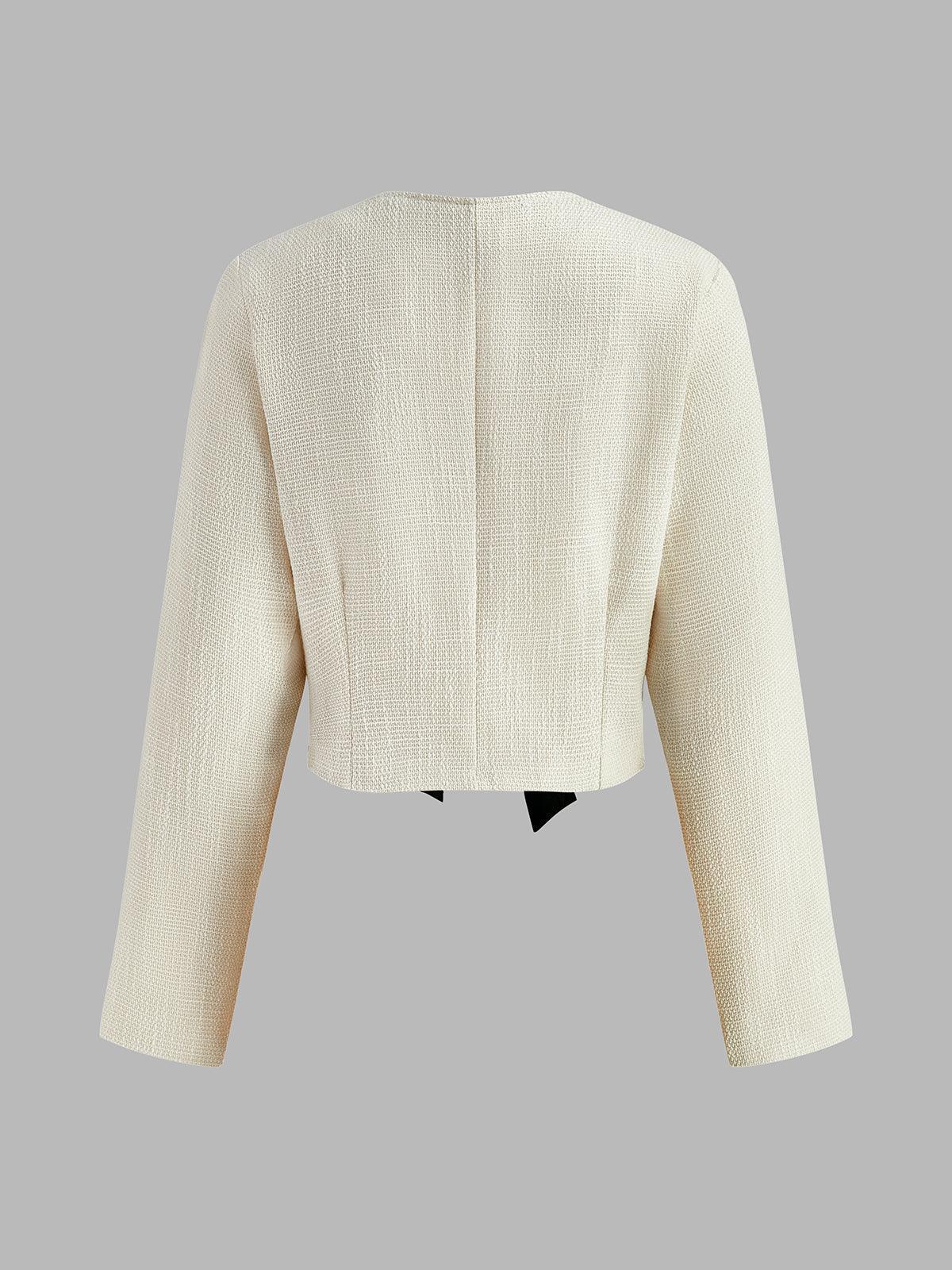 Ekru Siyah Kurdele Detaylı Kısa Ceket