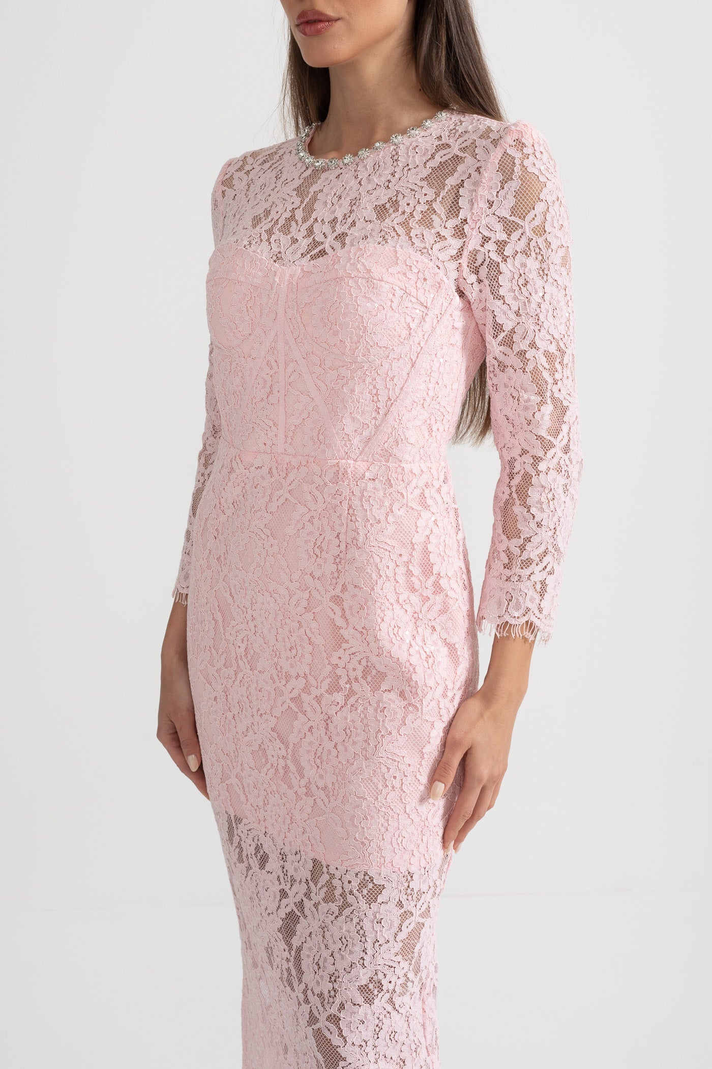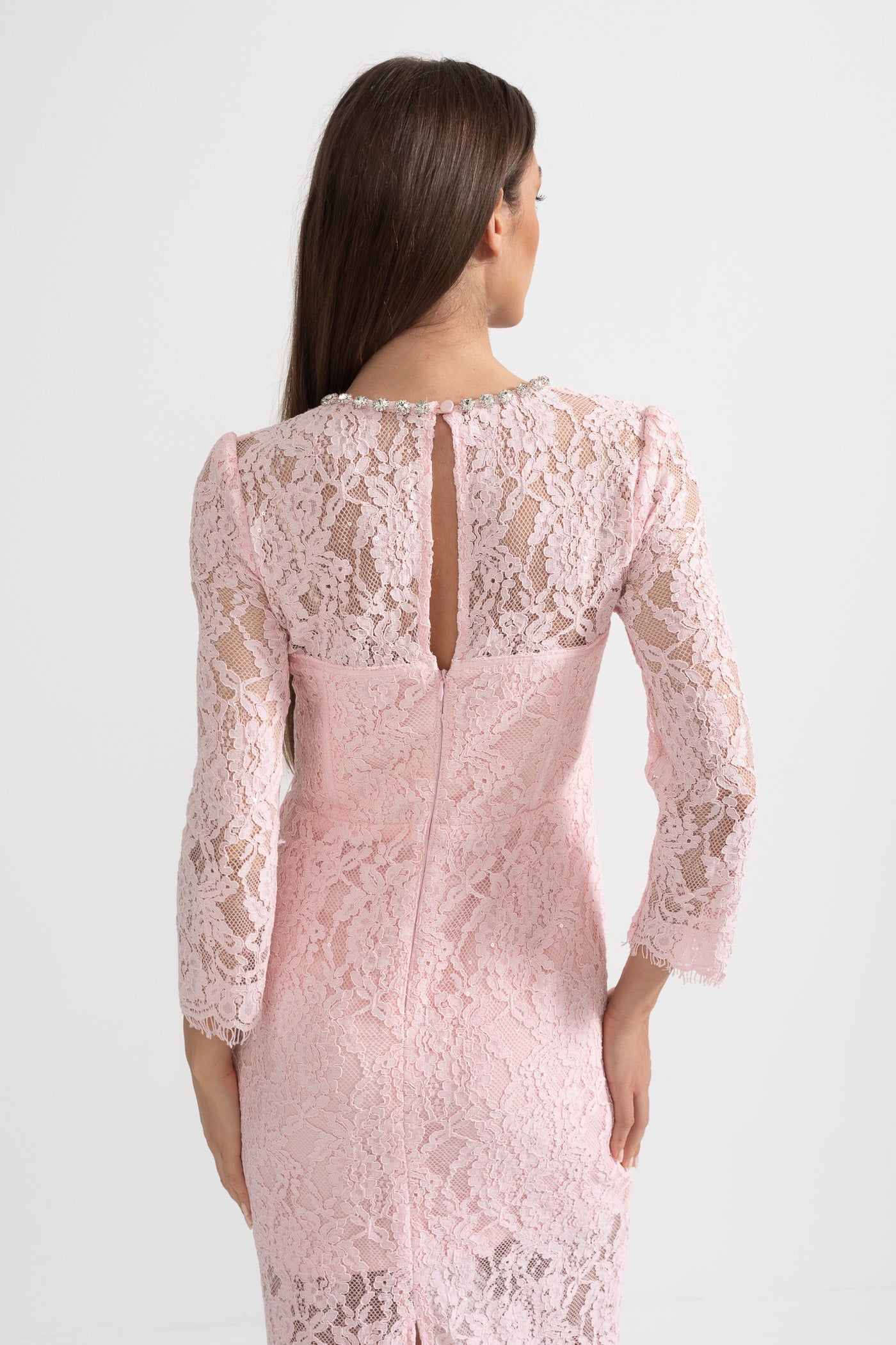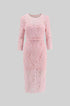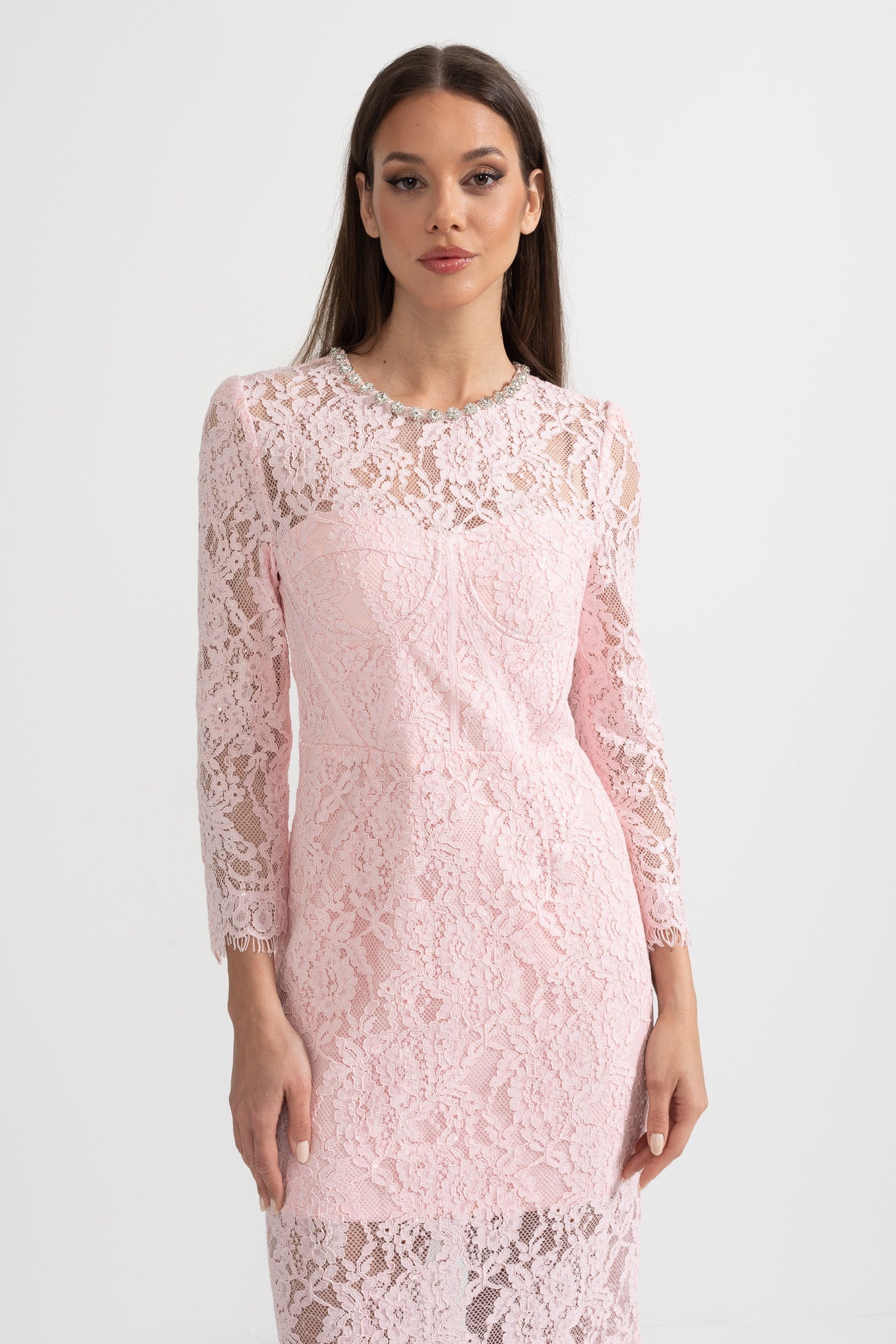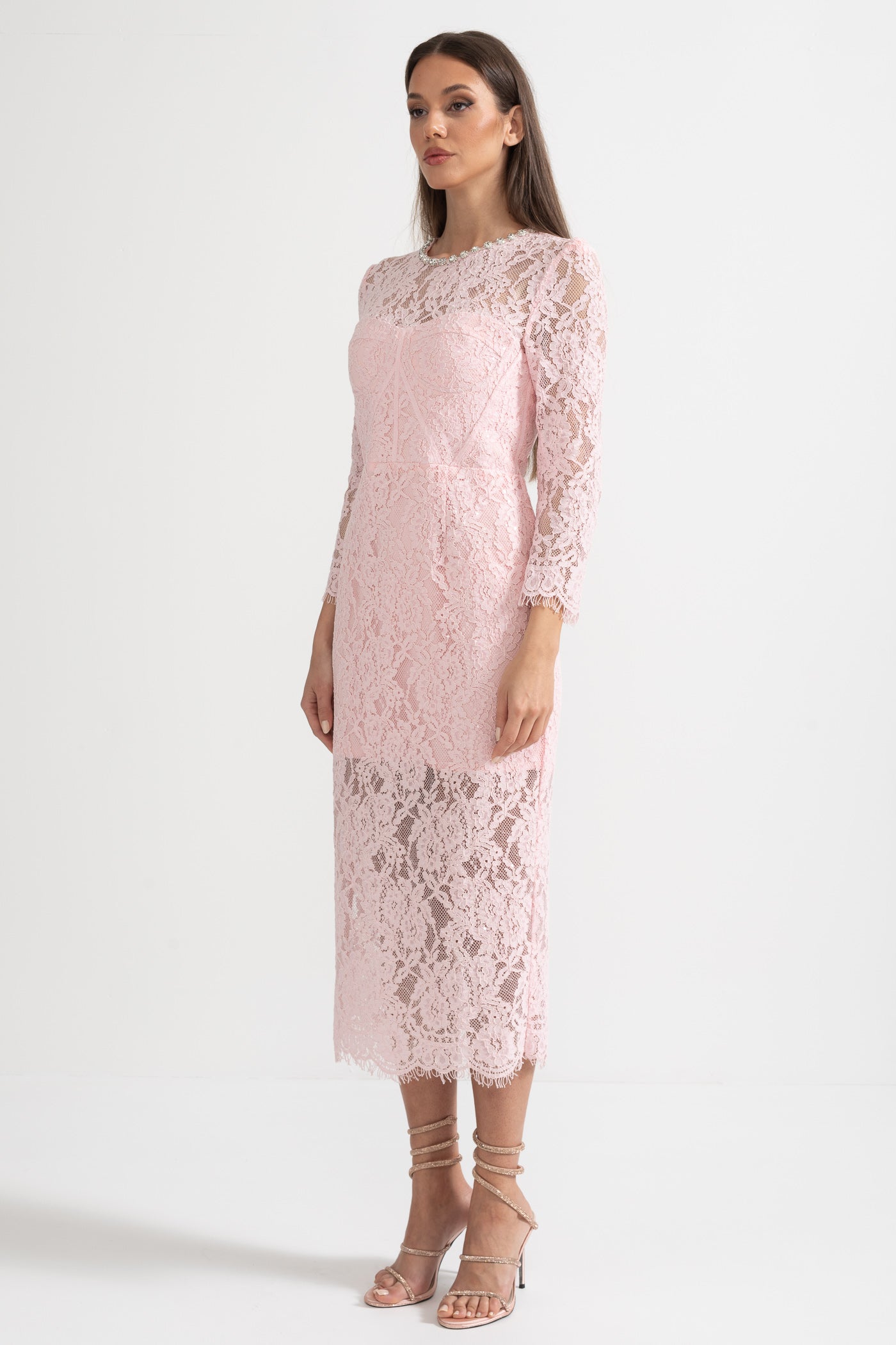 Olyssa Eşleşen Bel Kemerli Zarif Uzun Kollu Dantel Elbise