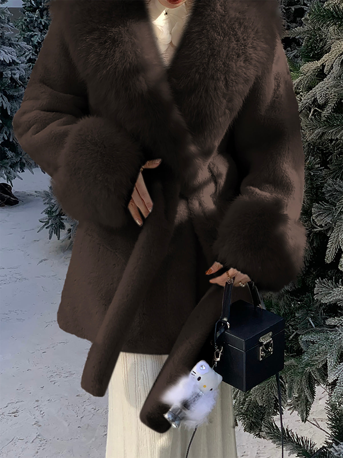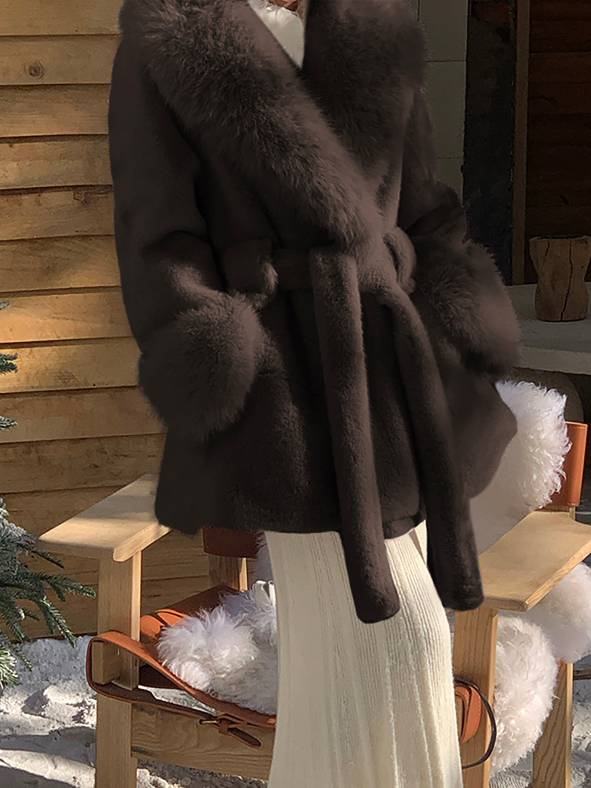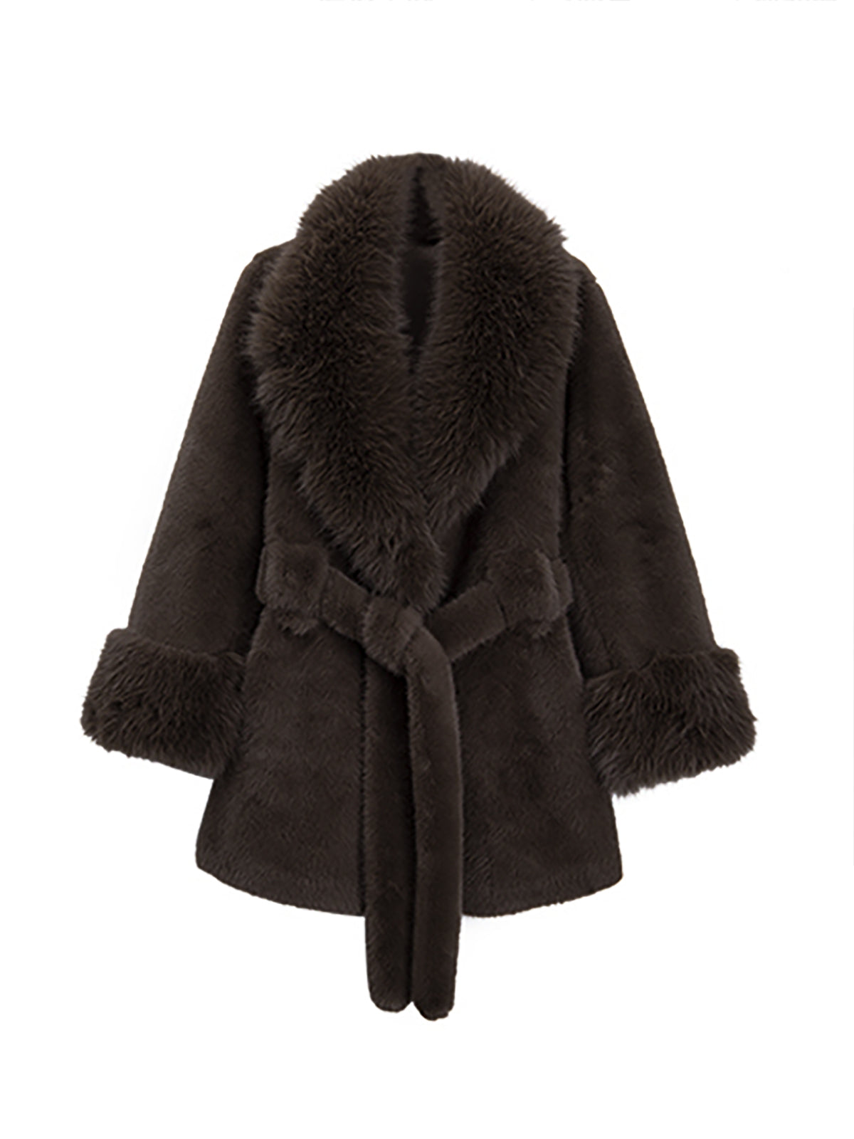 Sahte Köpekbalığı Derisi Kemerli Sıcak Palto