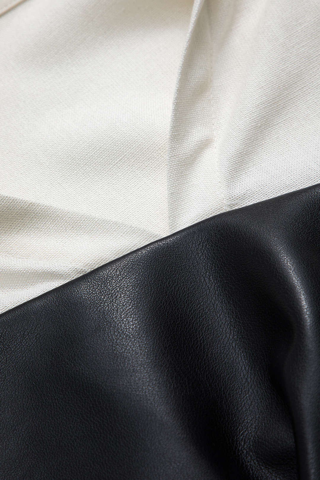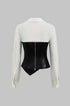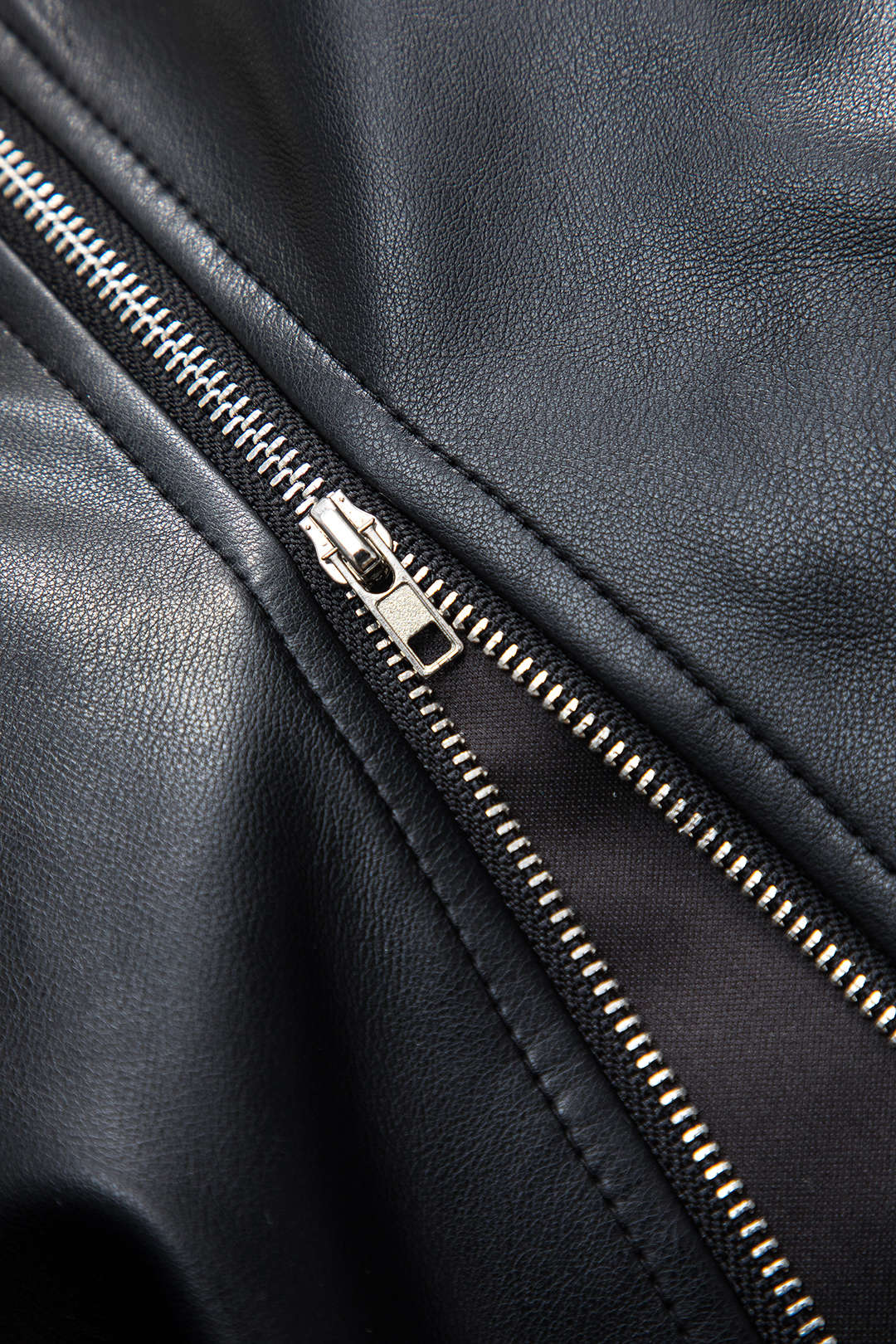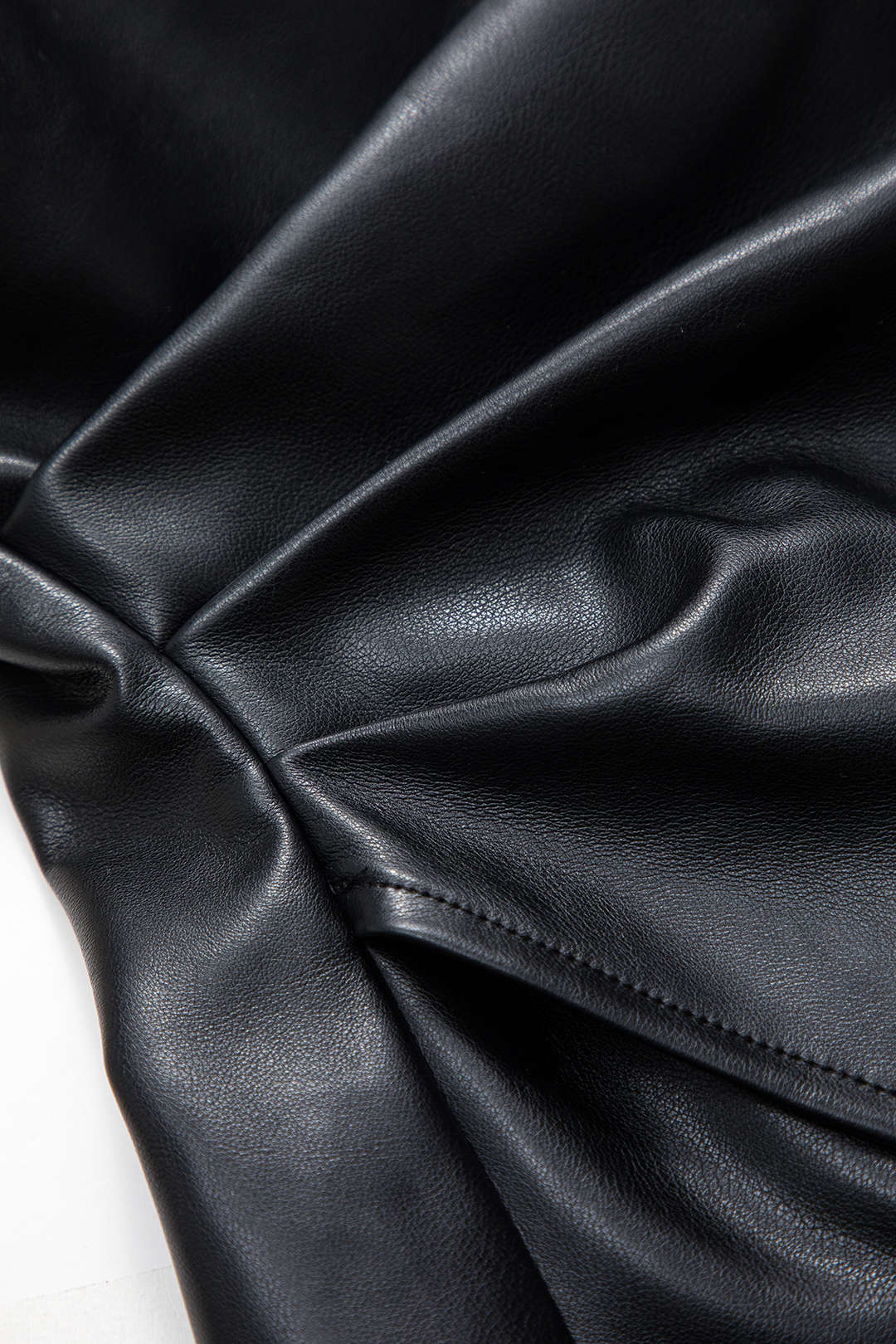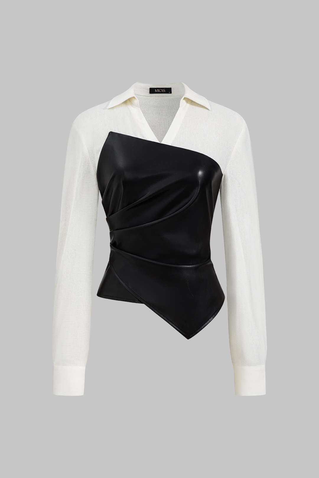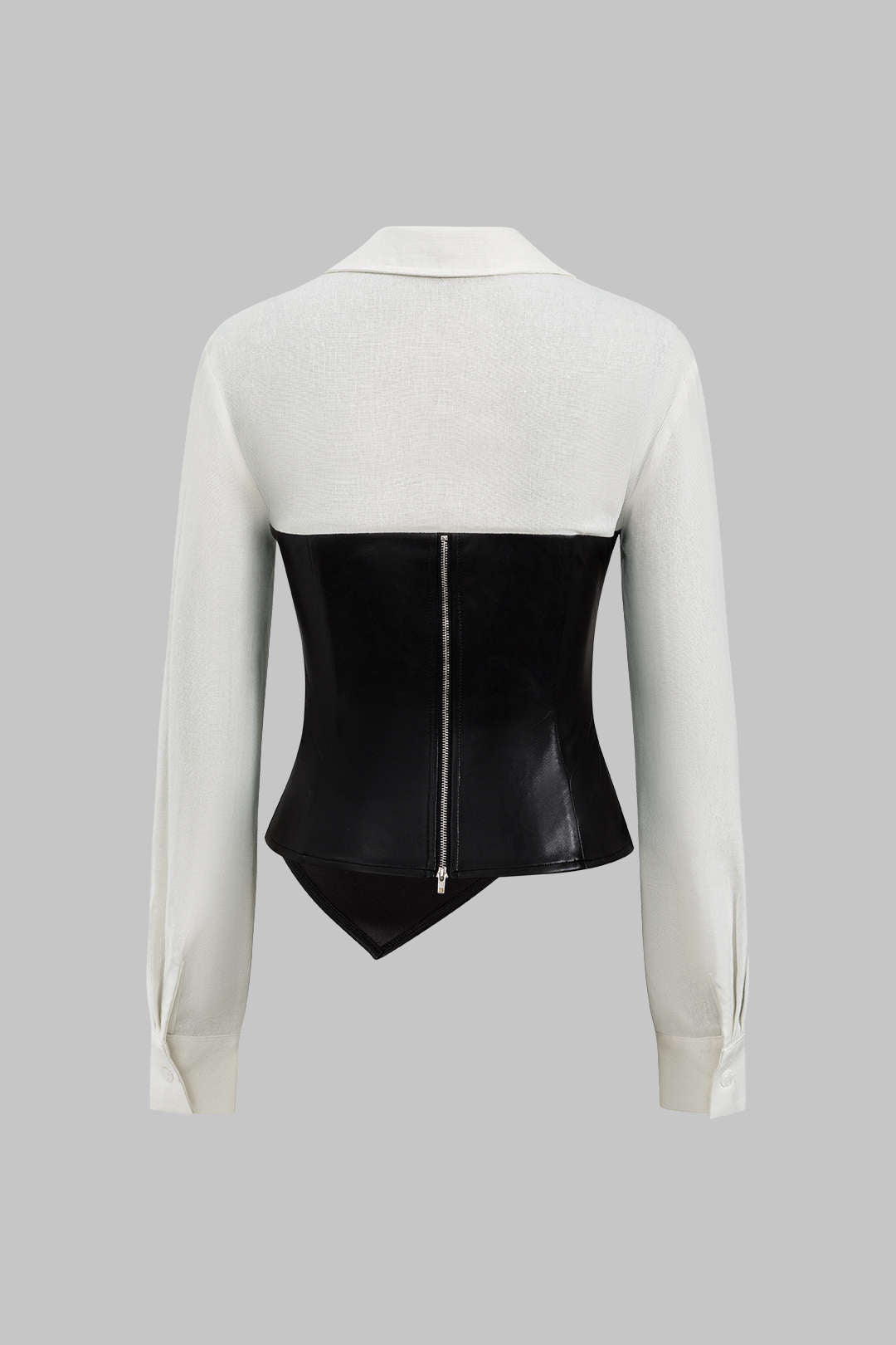 Suni Deri Keten Asimetrik Patchwork Fermuarlı V Yaka Uzun Kollu Gömlek