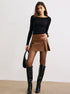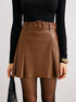 Şık Krep Suni Deri Etek, Şık Kemerle