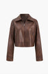 Faux Leather Zipper Long Sleeve Ceket