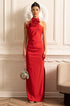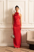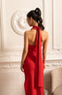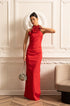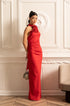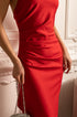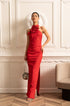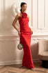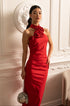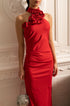 Olyssa 3 Boyutlu Güllü ve Yandan Yırtmaçlı Elbise - Kırmızı