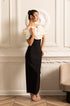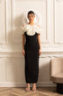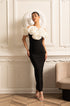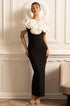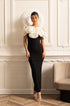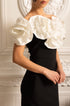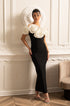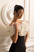 Olyssa Büyük Beyaz Çiçek Süslemeli Gömme Elbise - Siyah