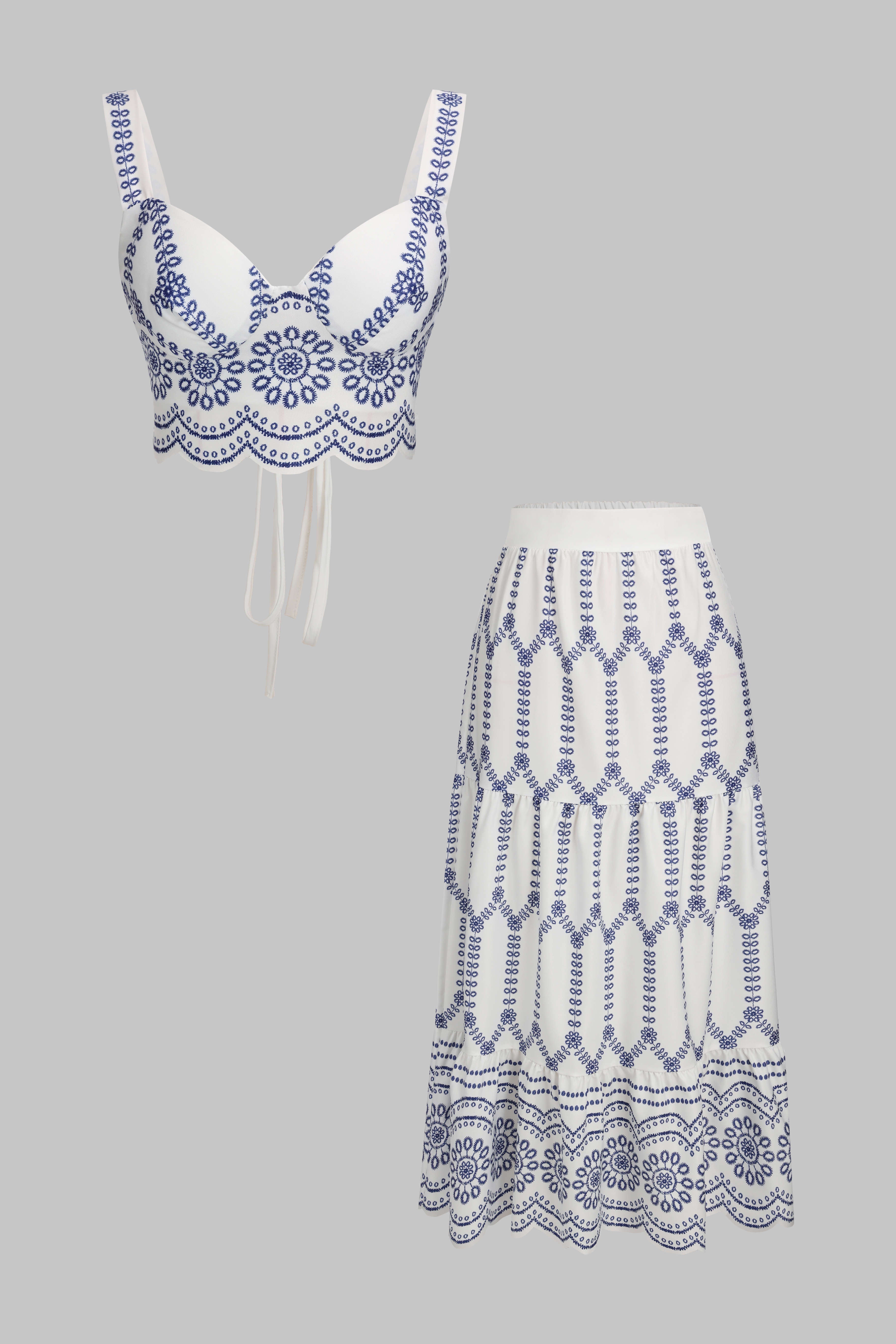 Çiçek Desenli Bağcıklı Sırt Dekolteli Cami Üstü ve Üst Giysi Seti