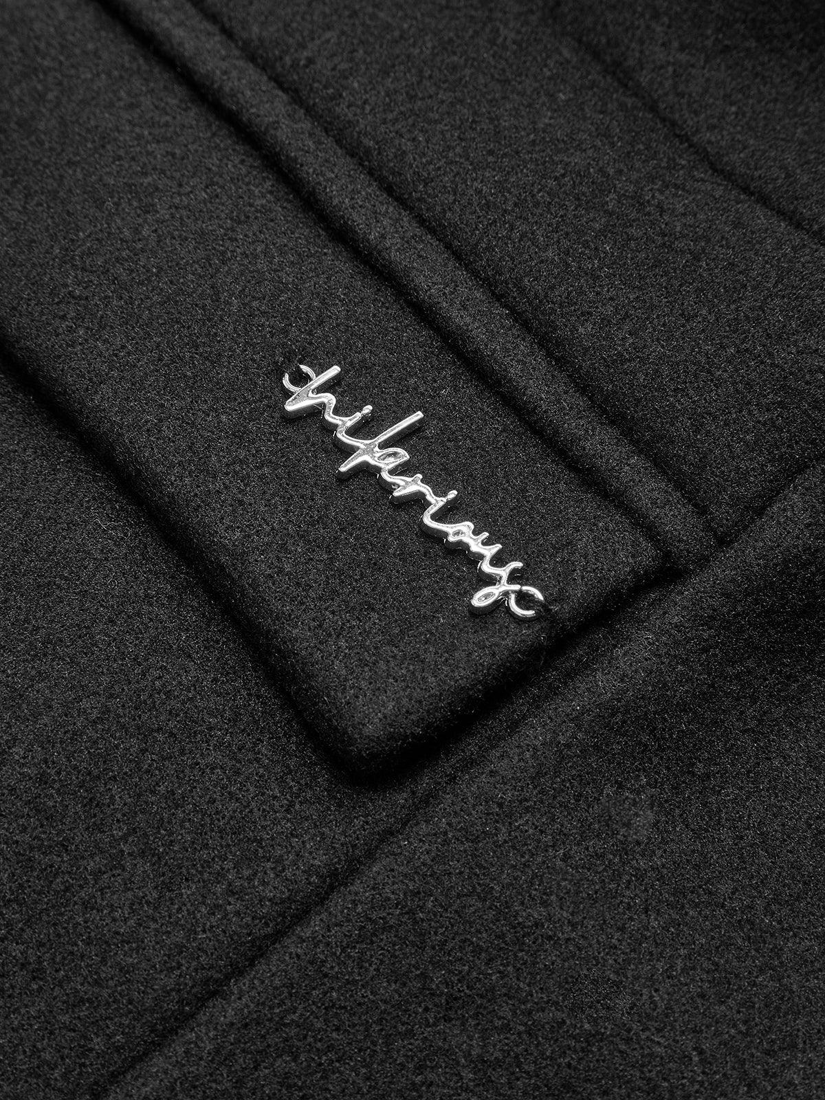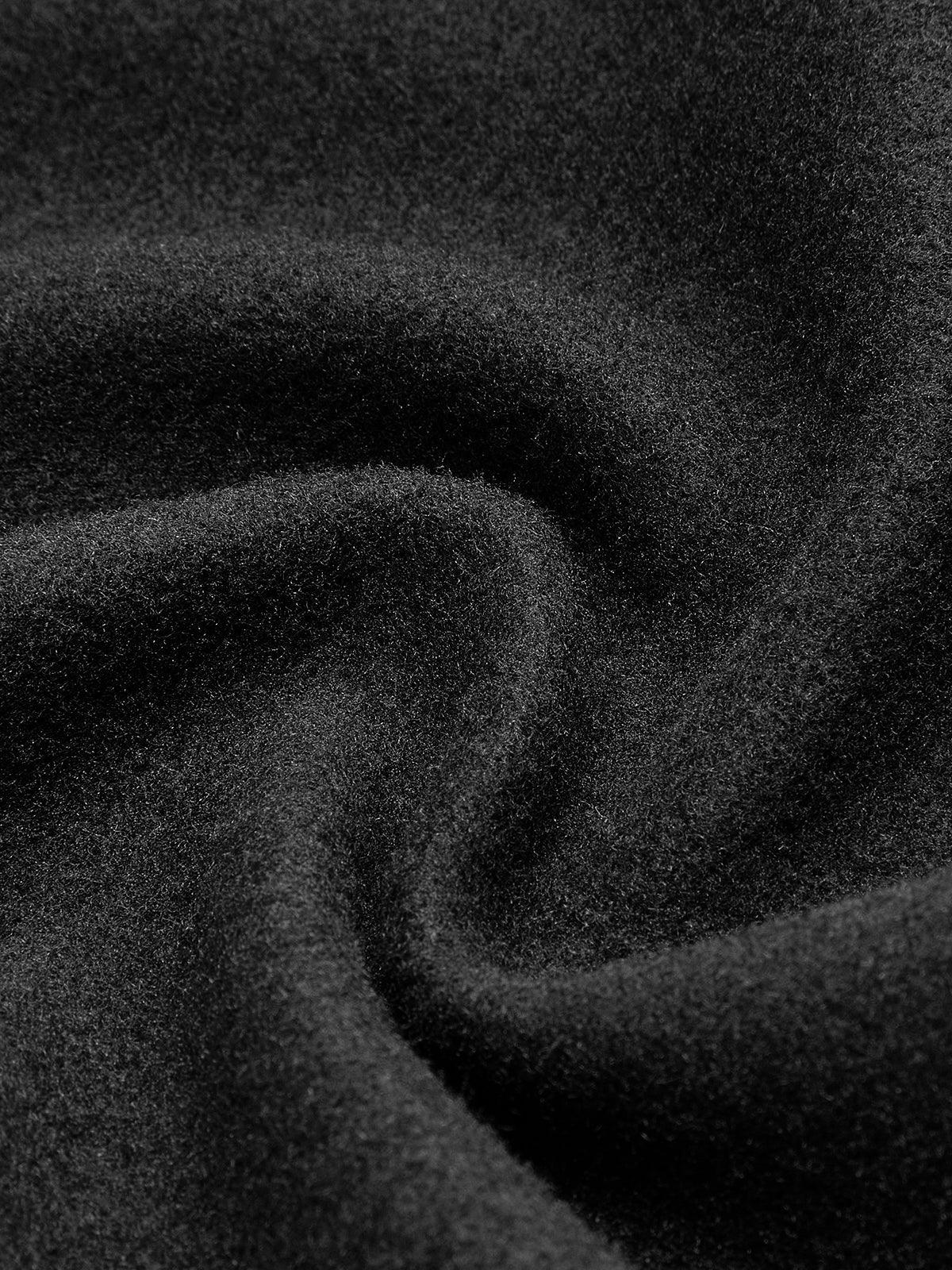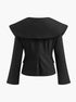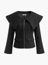 Geniş Yakalı Fermuar Detaylı Siyah Ceket