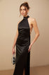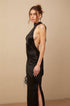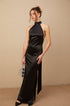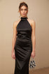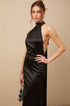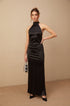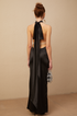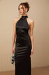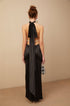 Olyssa Ginevra Siyah Boyundan Bağlamalı İnci Saten Maxi Elbise