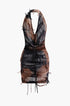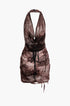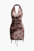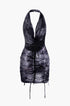 Halter Sırt Açık Yıpranmış Mini Elbise