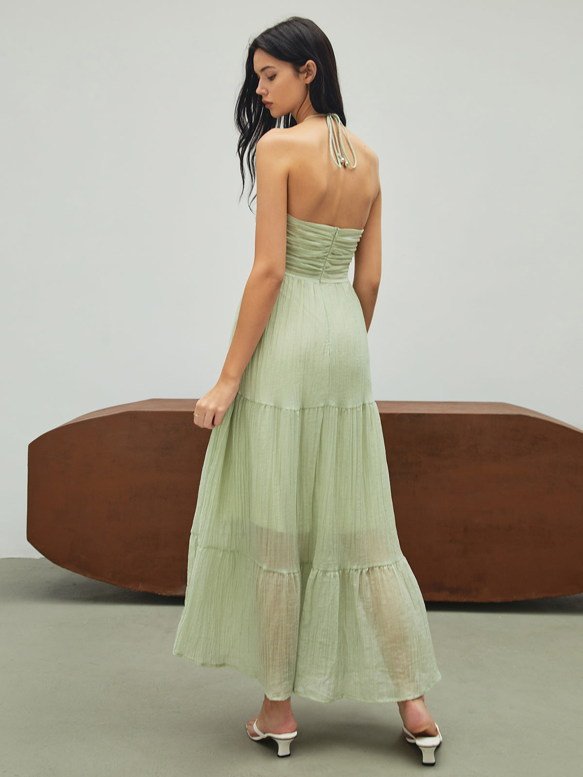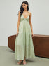Boyundan Bağlamalı Sırtı Açık Tatil Uzun Elbise