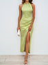Halter Dokulu Sırtı Açık Abiye Elbise