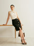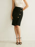 Şık Yüksek Bel Etek, Modern Yan Düğmeleriyle