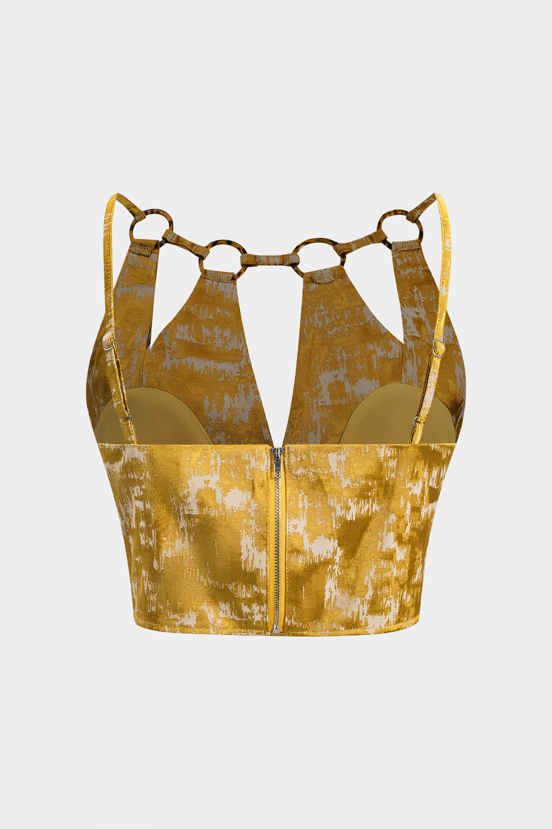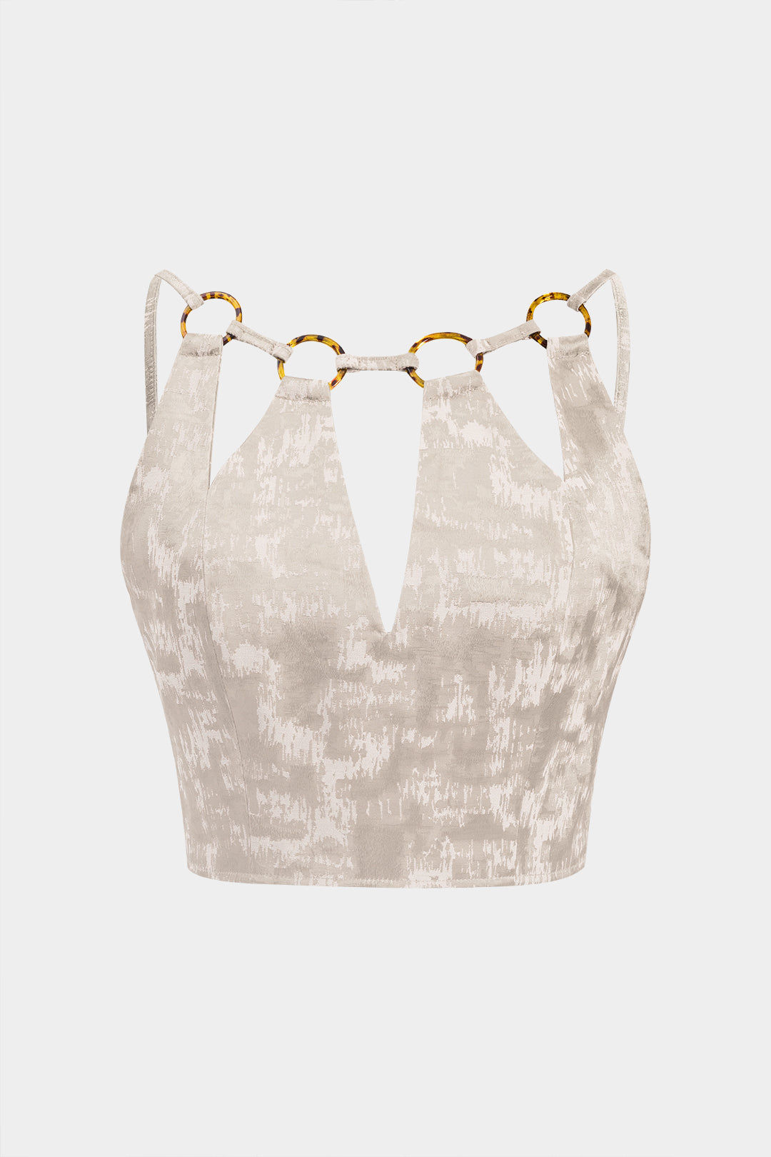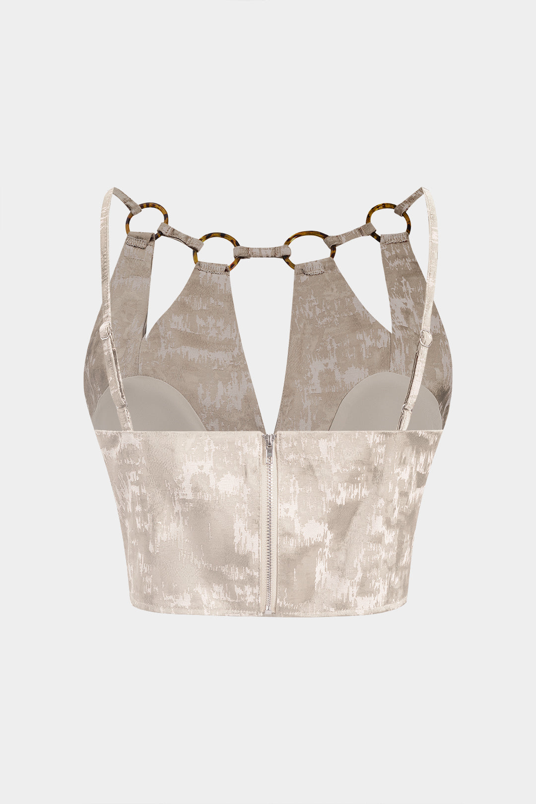 Jakarlı Kesim Açık Yırtmaçlı Fermuarlı Sırt Dekolteli Askılı Üst
