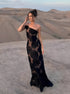 Jakarlı Çiçekli Asimetrik Uzun Elbise