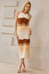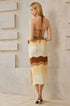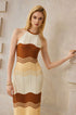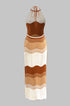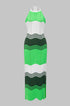 Örgü Kontrast Sırt Açık Kolsuz Halter Yaka Yırtmaçlı Elbise