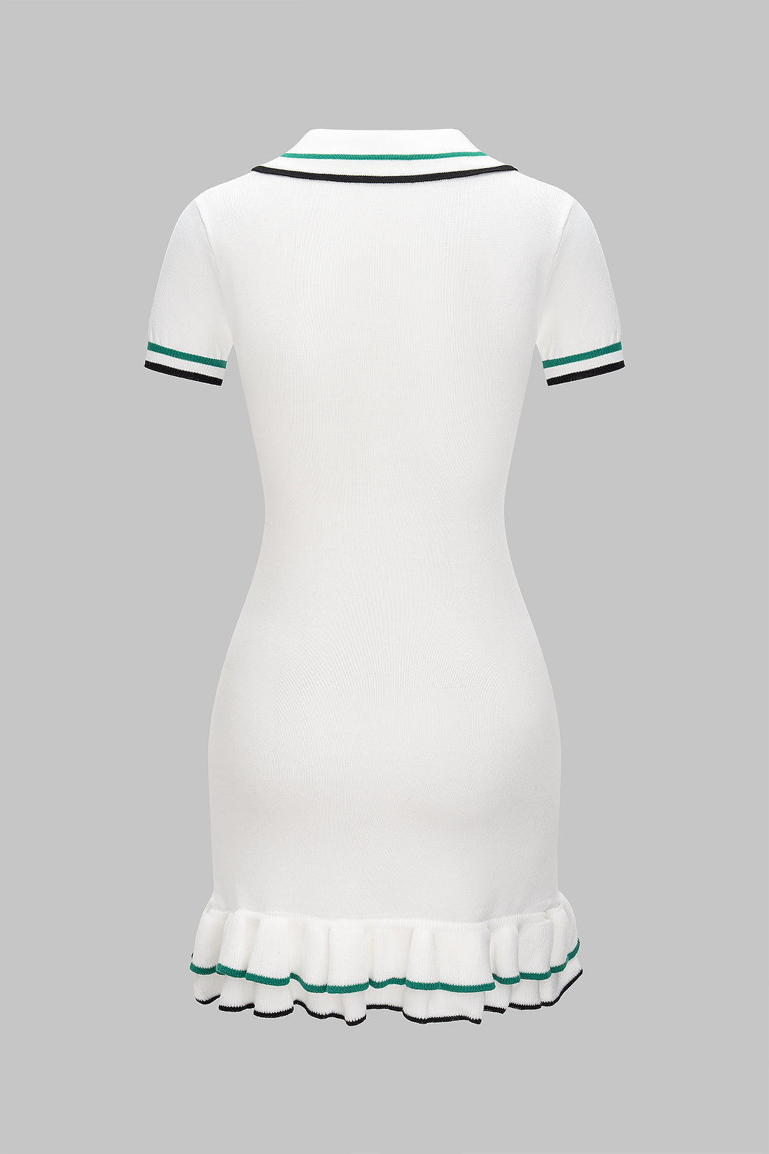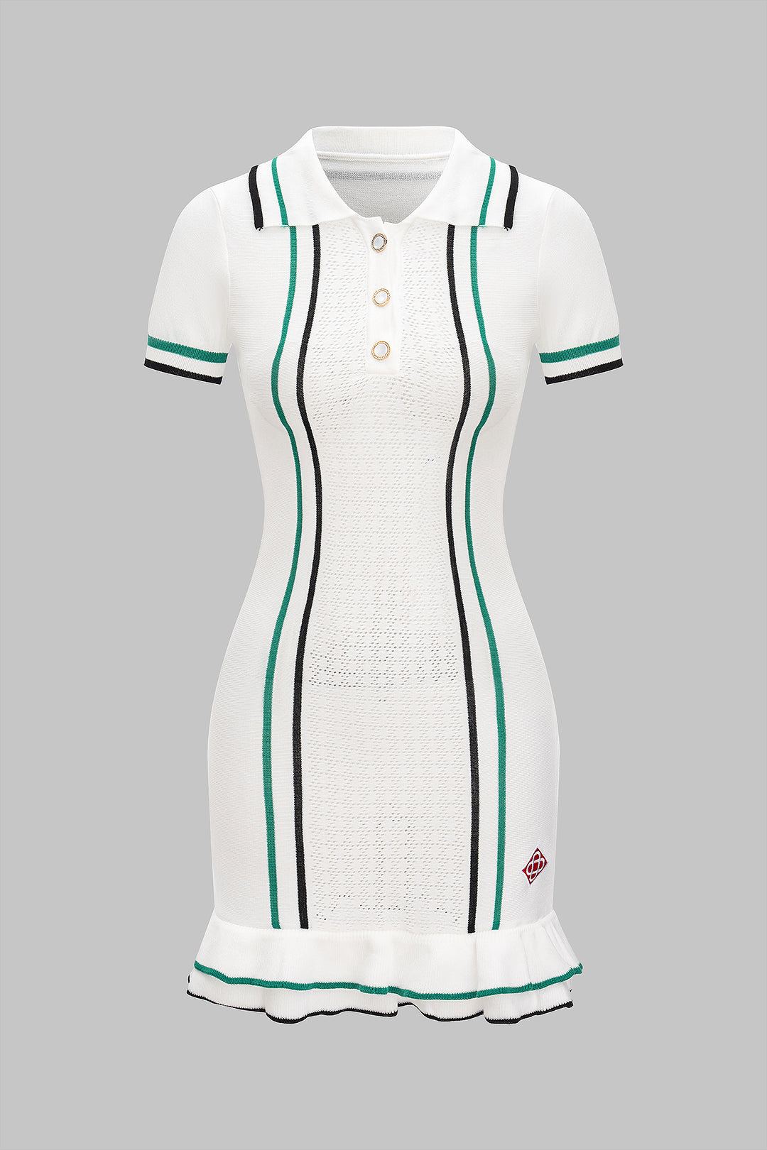 Triko Kontrast Düğme Volan Kısa Kol Elbise