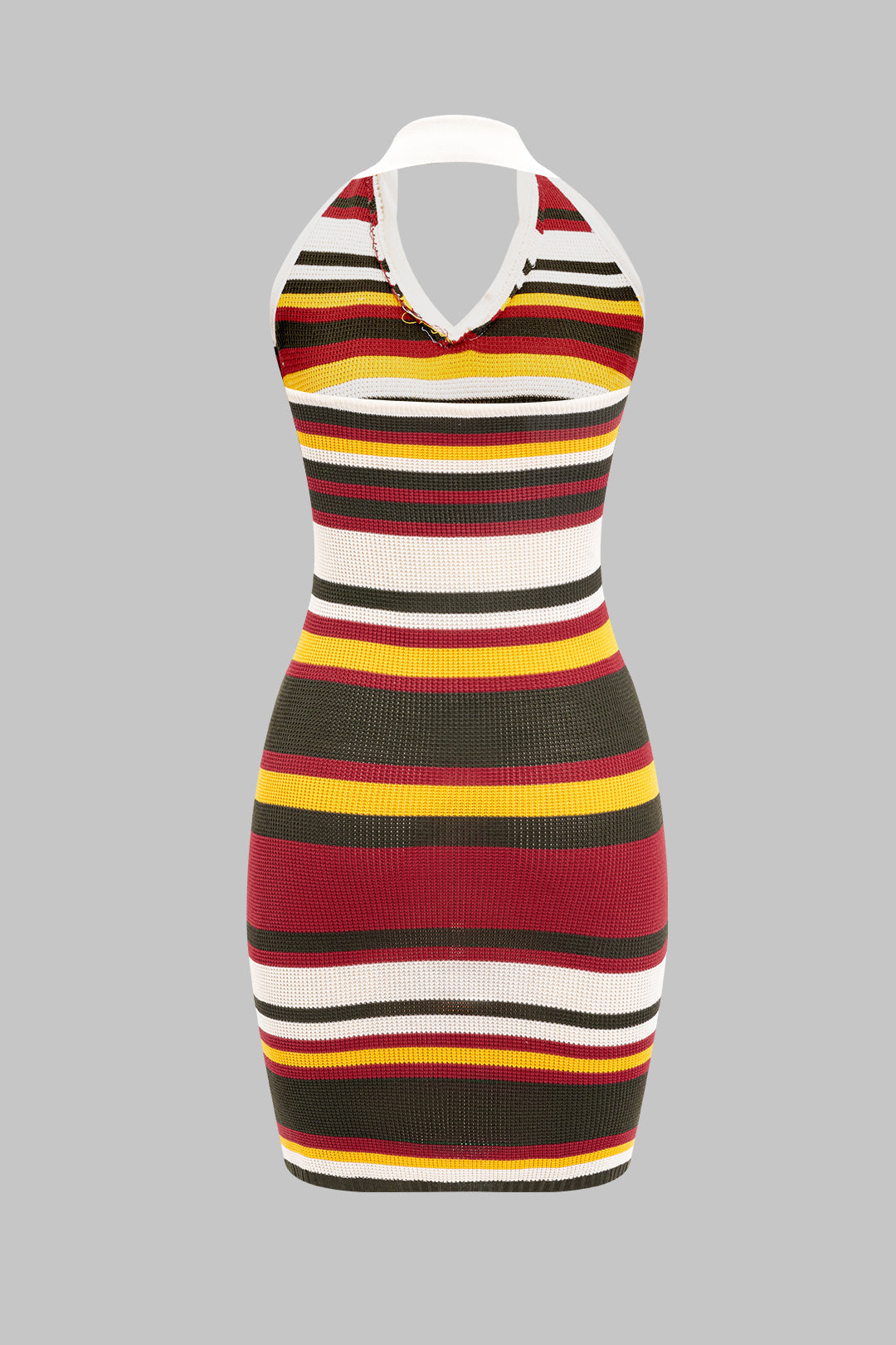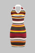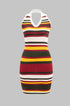 Örgü Kontrast Halter Yaka Sırt Açık Kolsuz Elbise