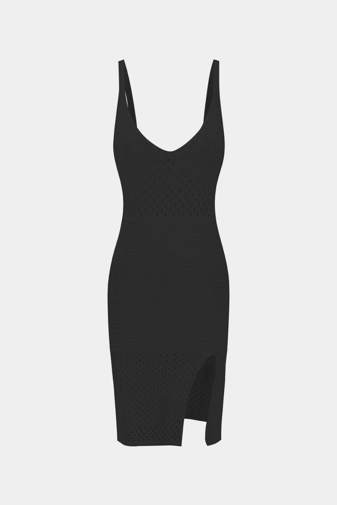 Örgü Boşluklu Kayma Yırtmaçlı Elbise