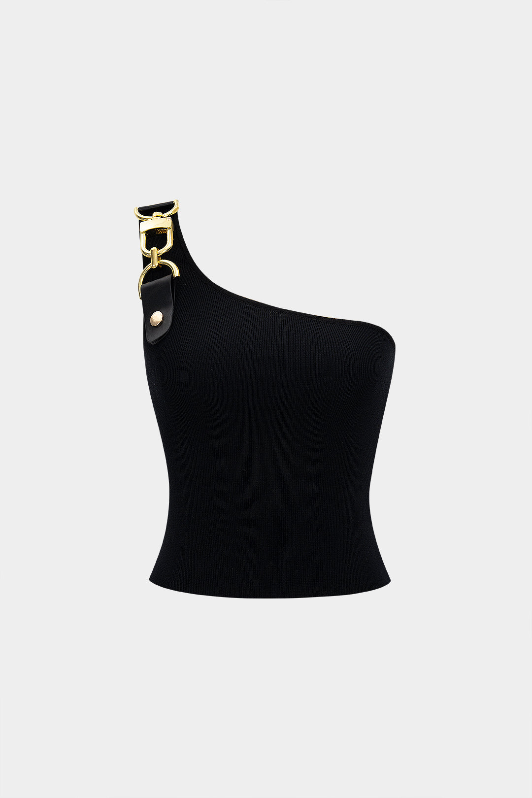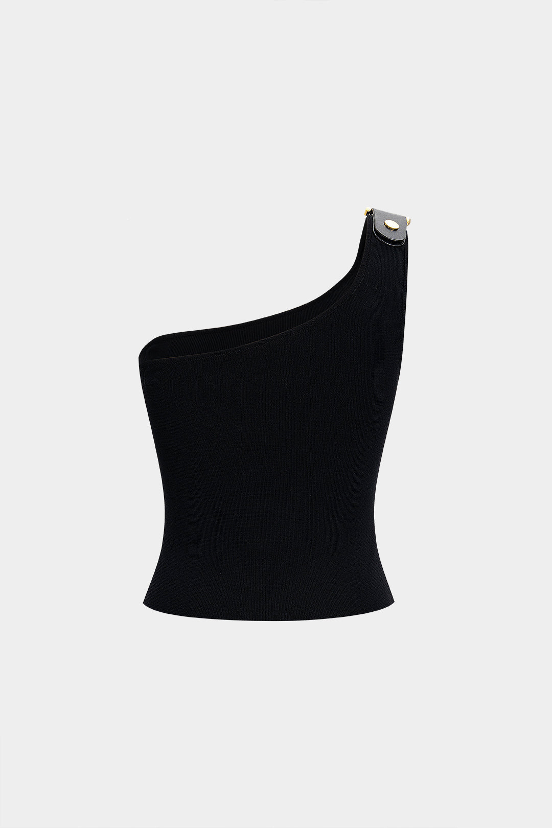 Örgü Metalik Asimetrik Kolsuz Bluz