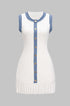 Triko Metalik Düğmeli Patiş İşlemeli Kolsuz Kazak Elbisesi