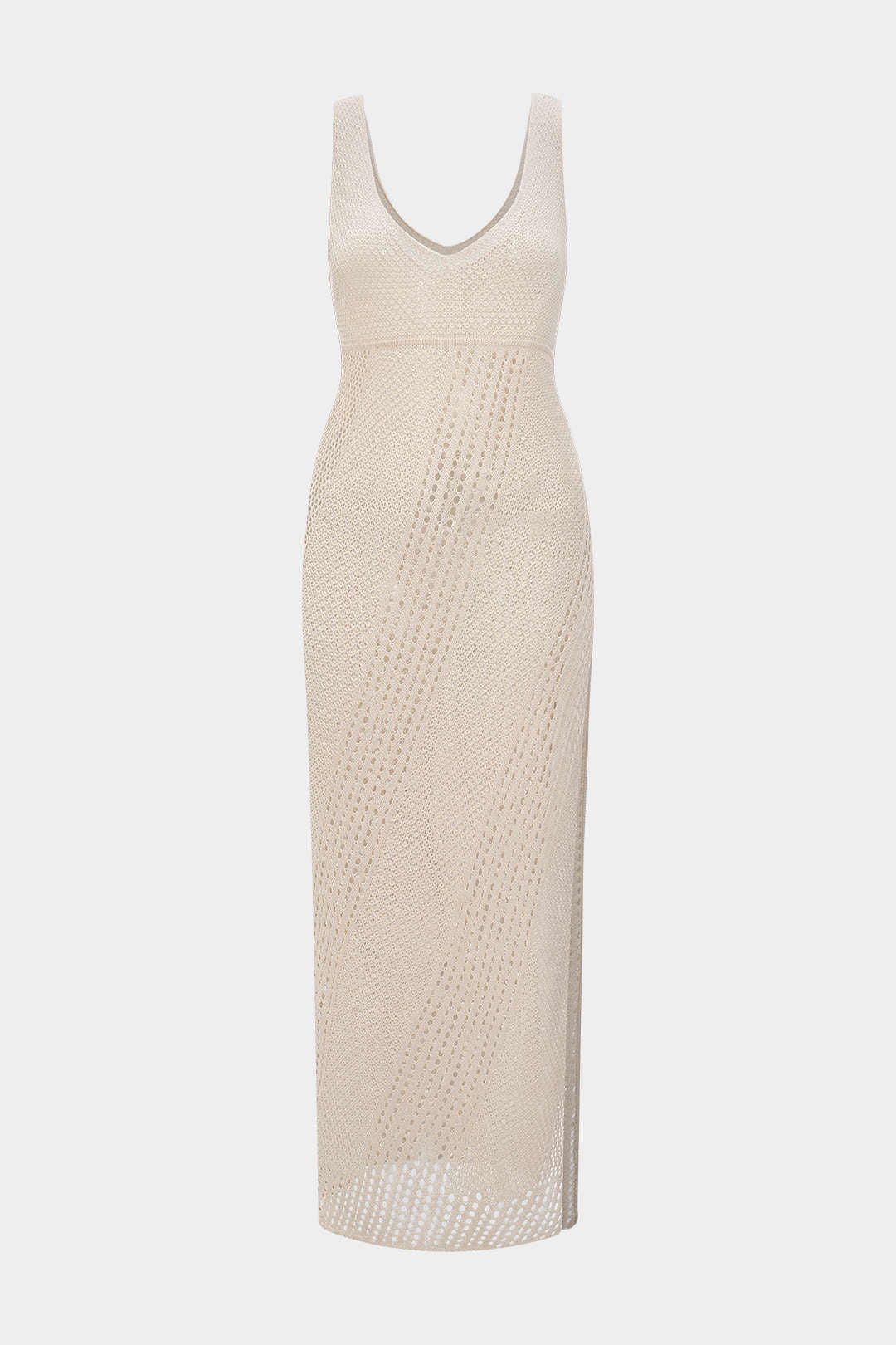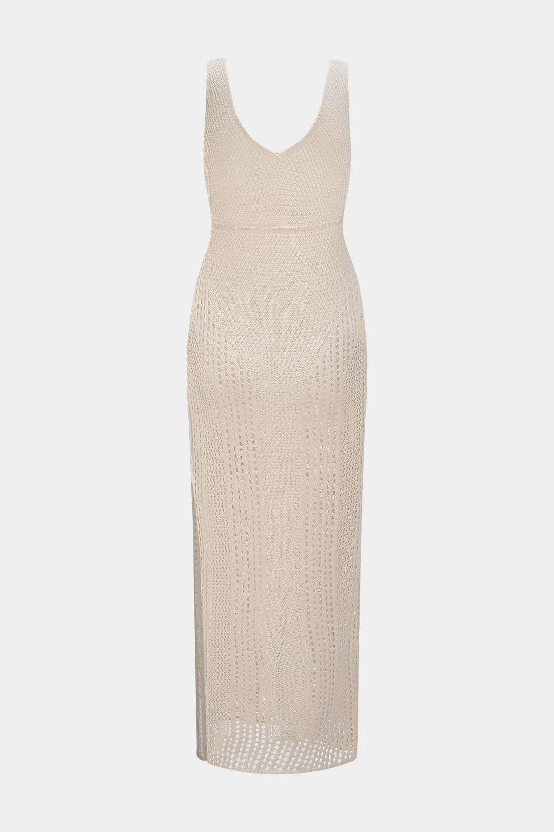 Triko V Yaka Yırtmaçlı Kolsuz Elbise