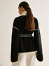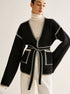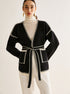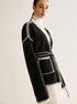 Kontrast Biye Kemerli Yırtmaçlı Hırka