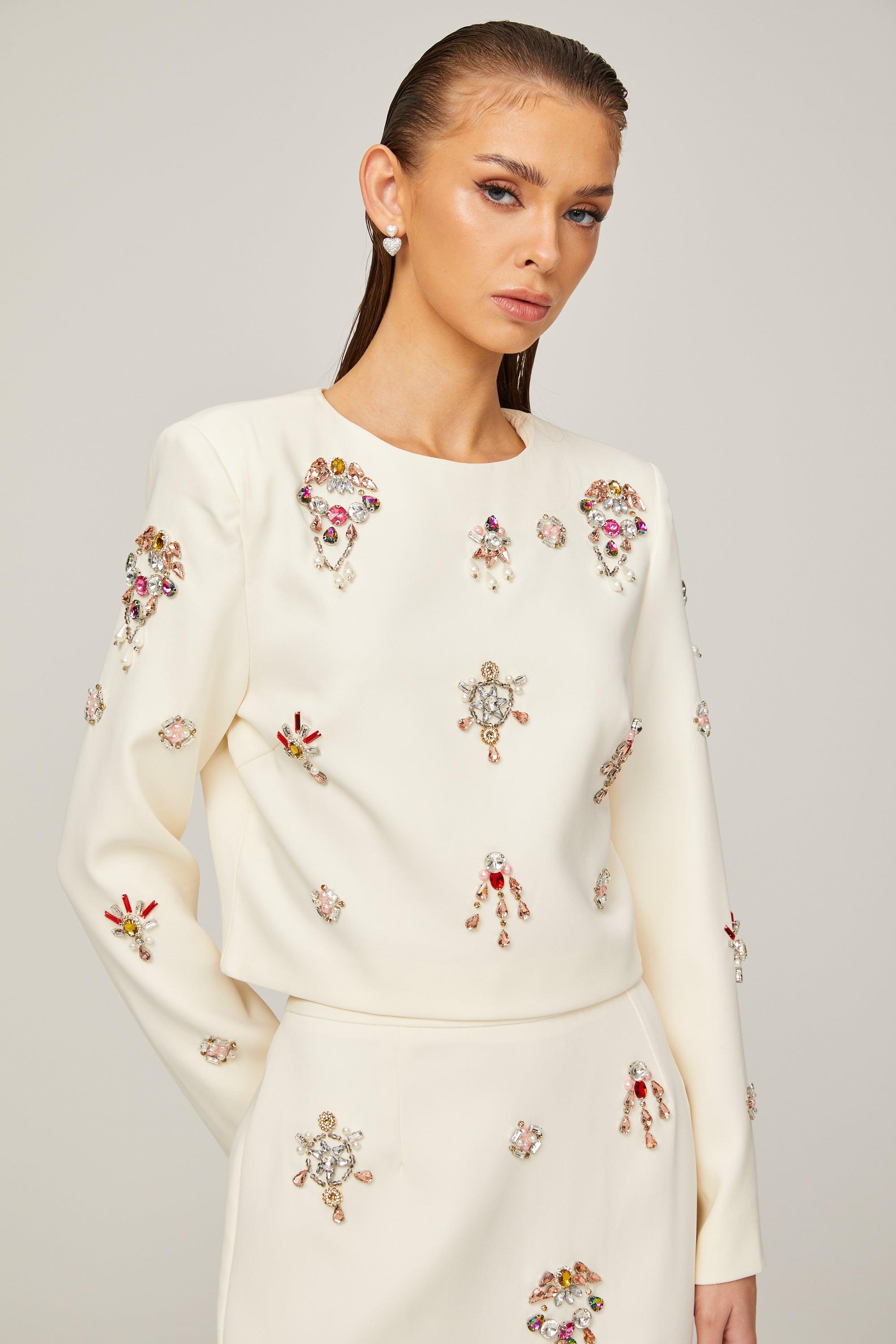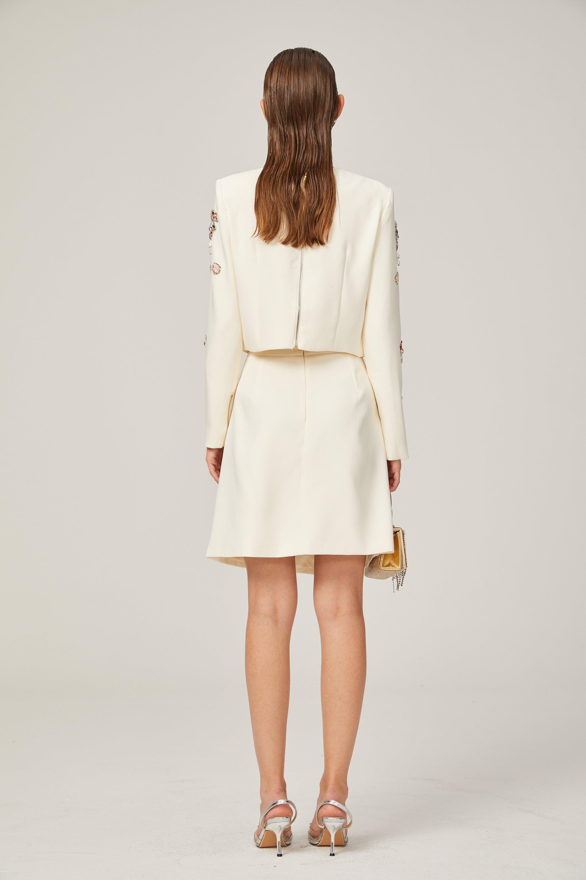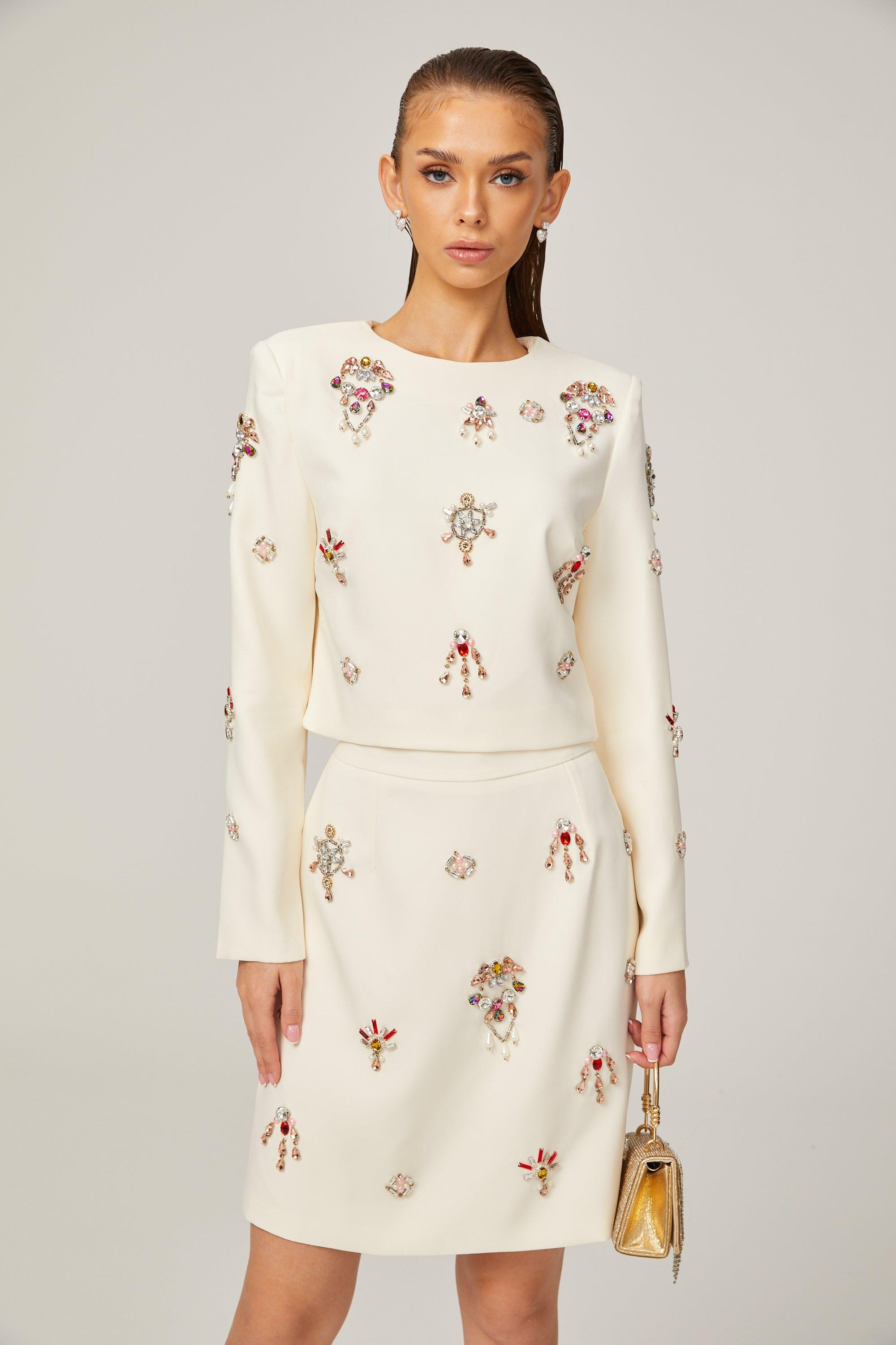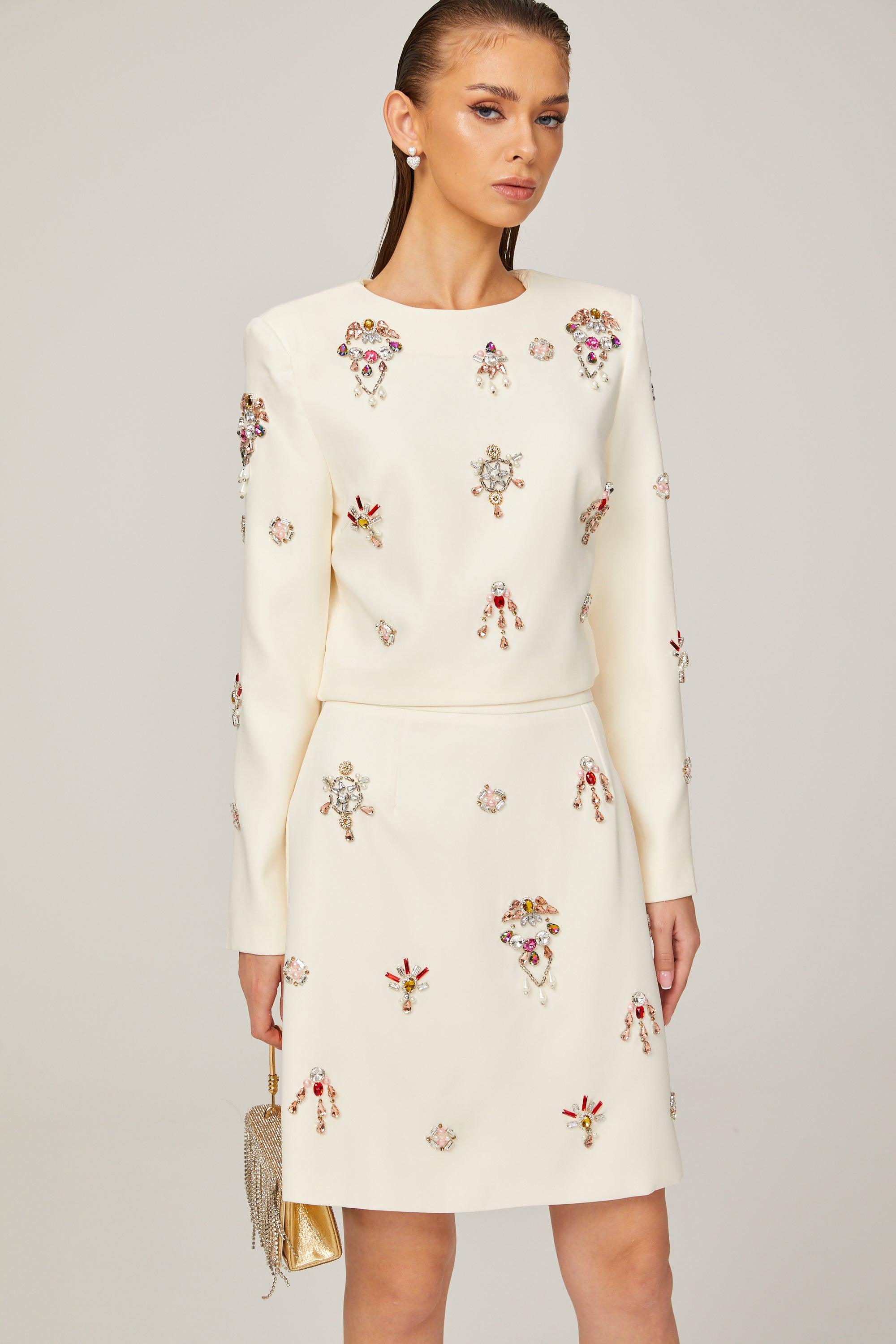 Kraliyet Işıltısı Taş İşlemeli Krem Elbise Seti